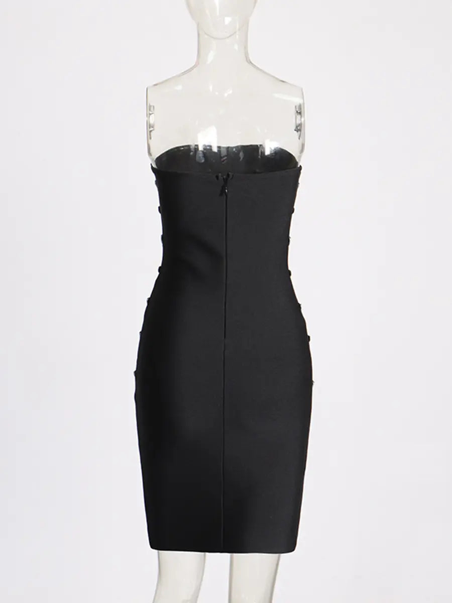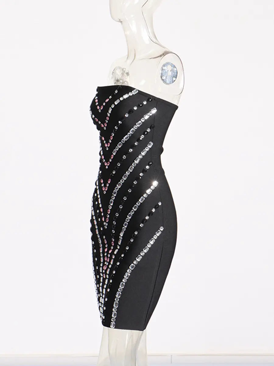 FREDA RHINESTONE PATCHWORK STRAPLESS BODYCON MINI DRESS