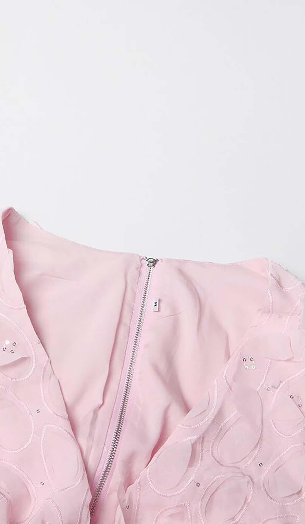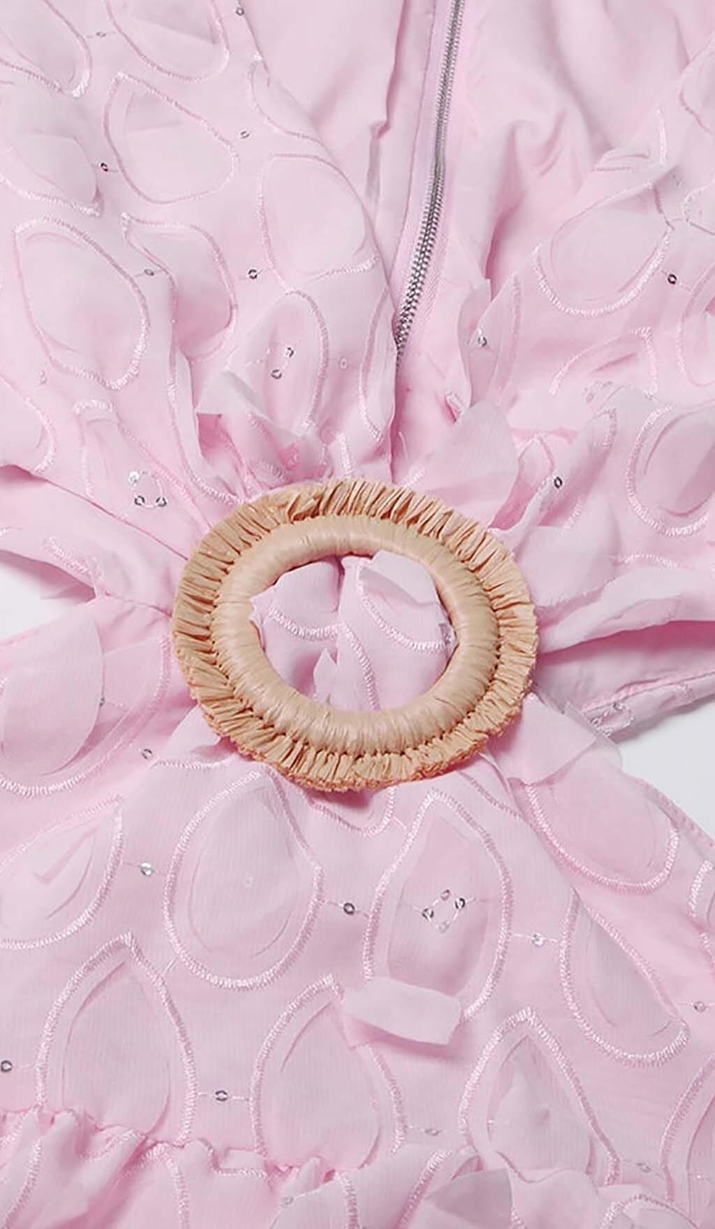 FRILL CUTOUT TRIM MINI DRESS IN PINK
