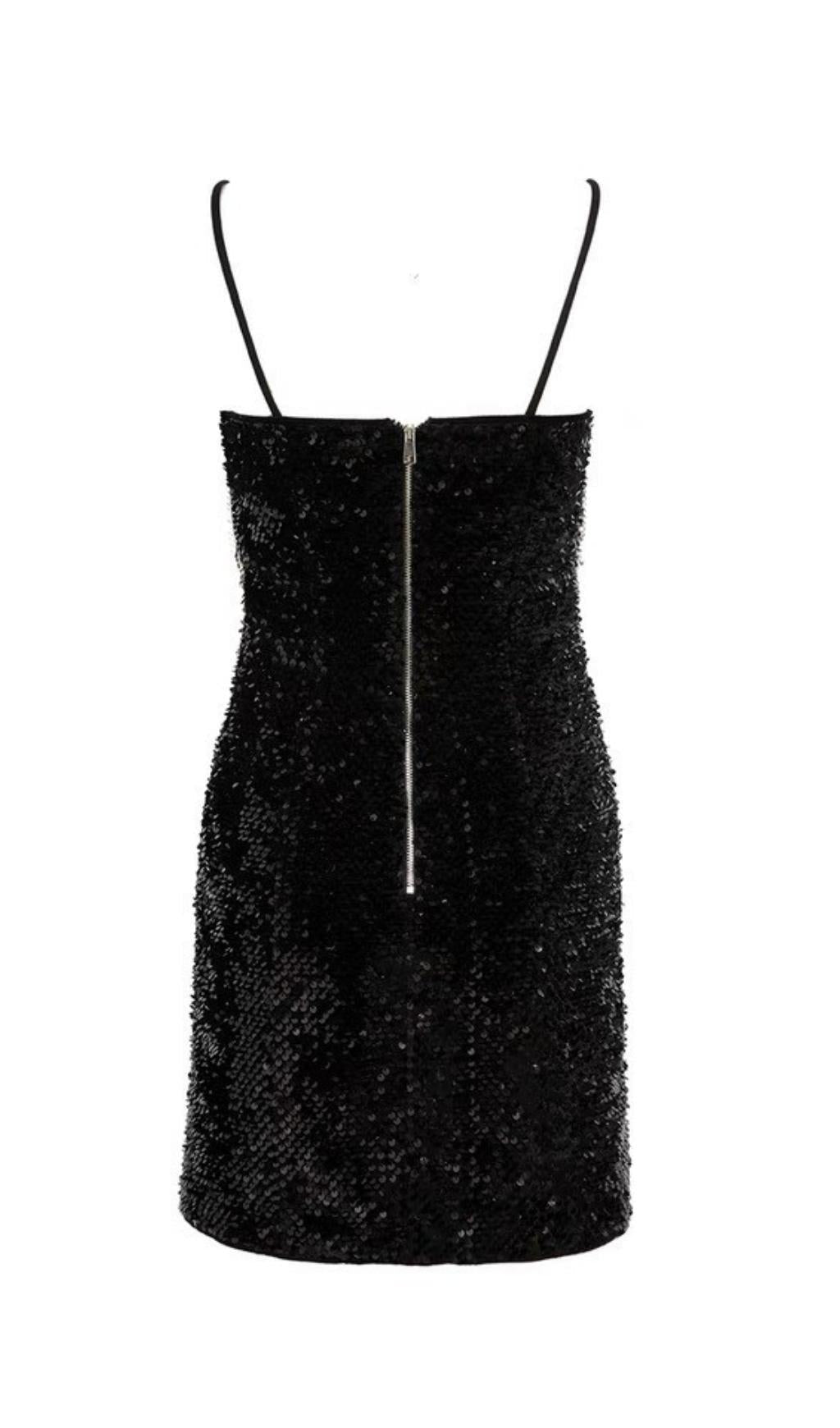 FRINGED SEQUIN MINI DRESS IN BLACK