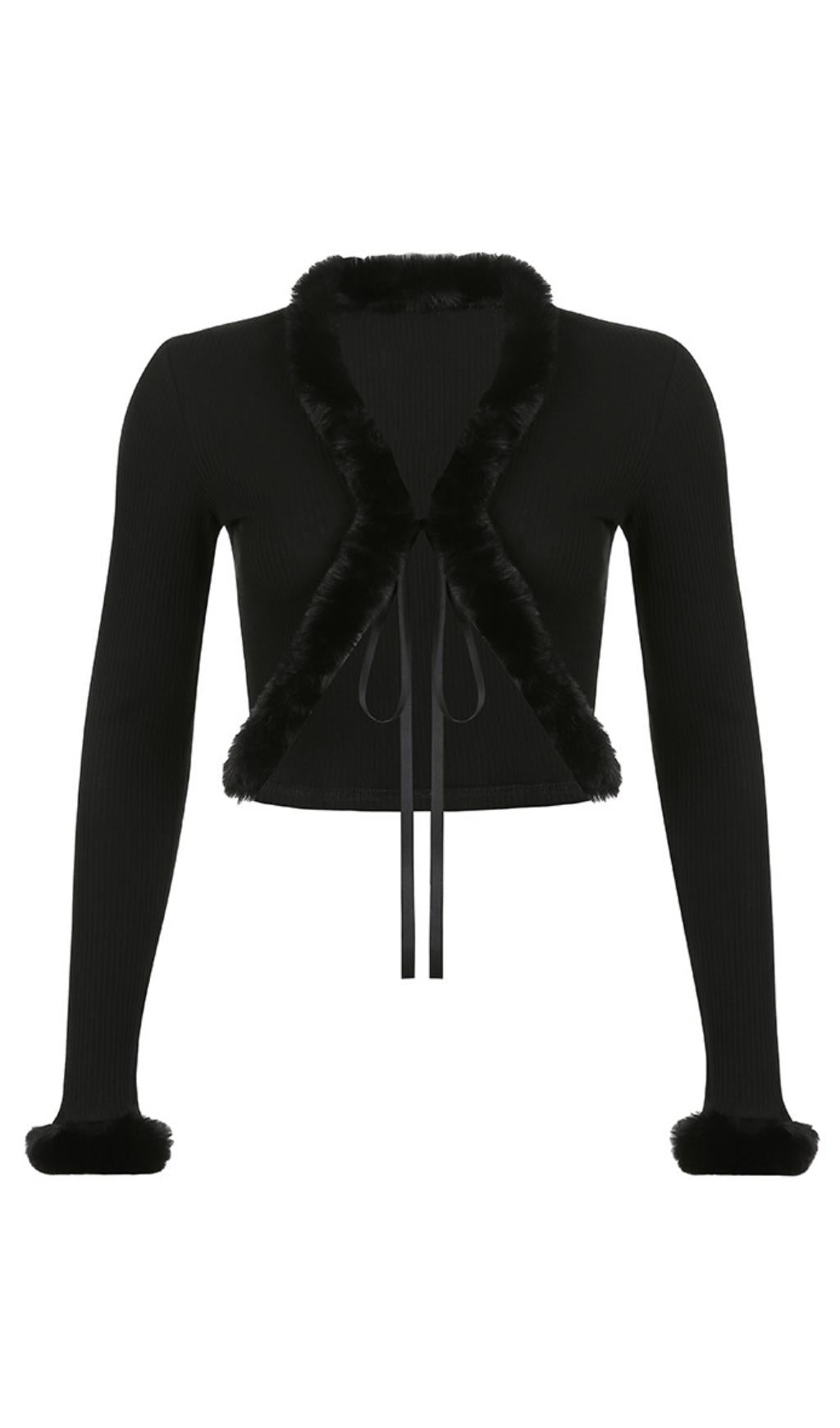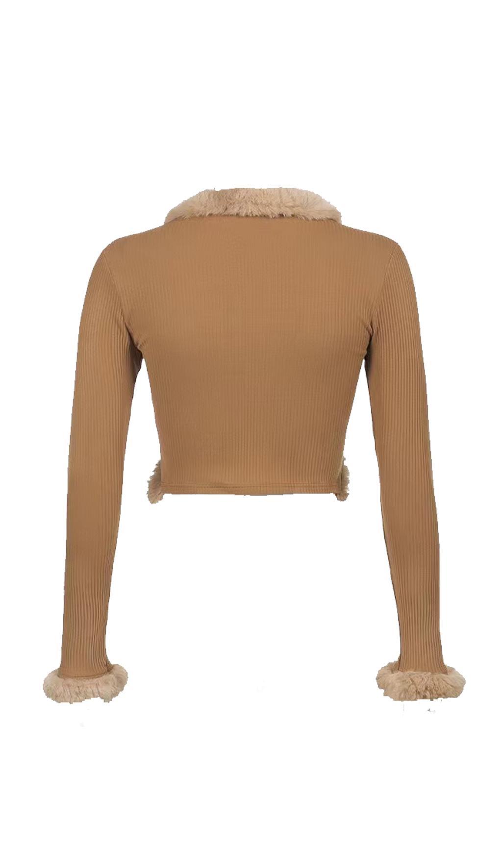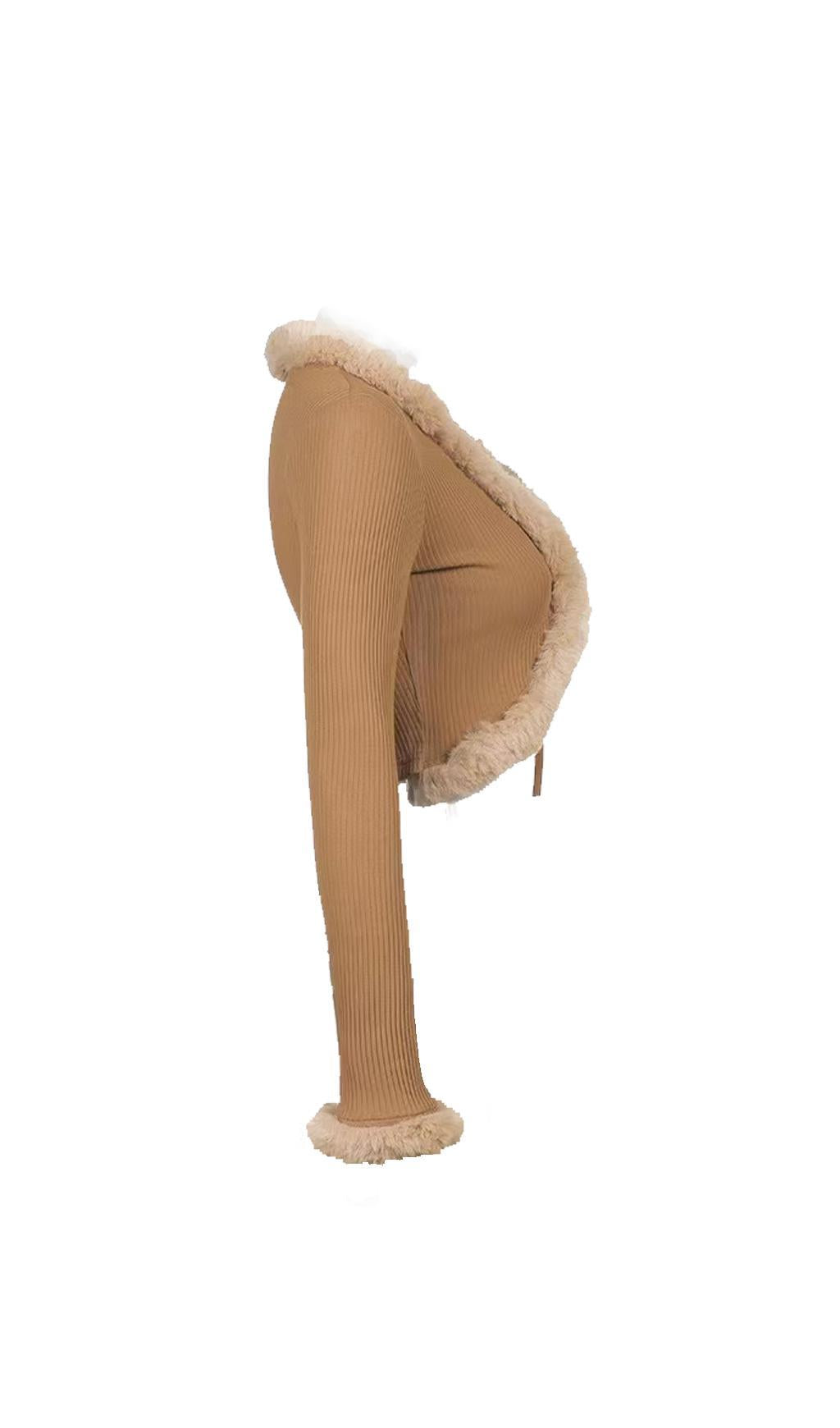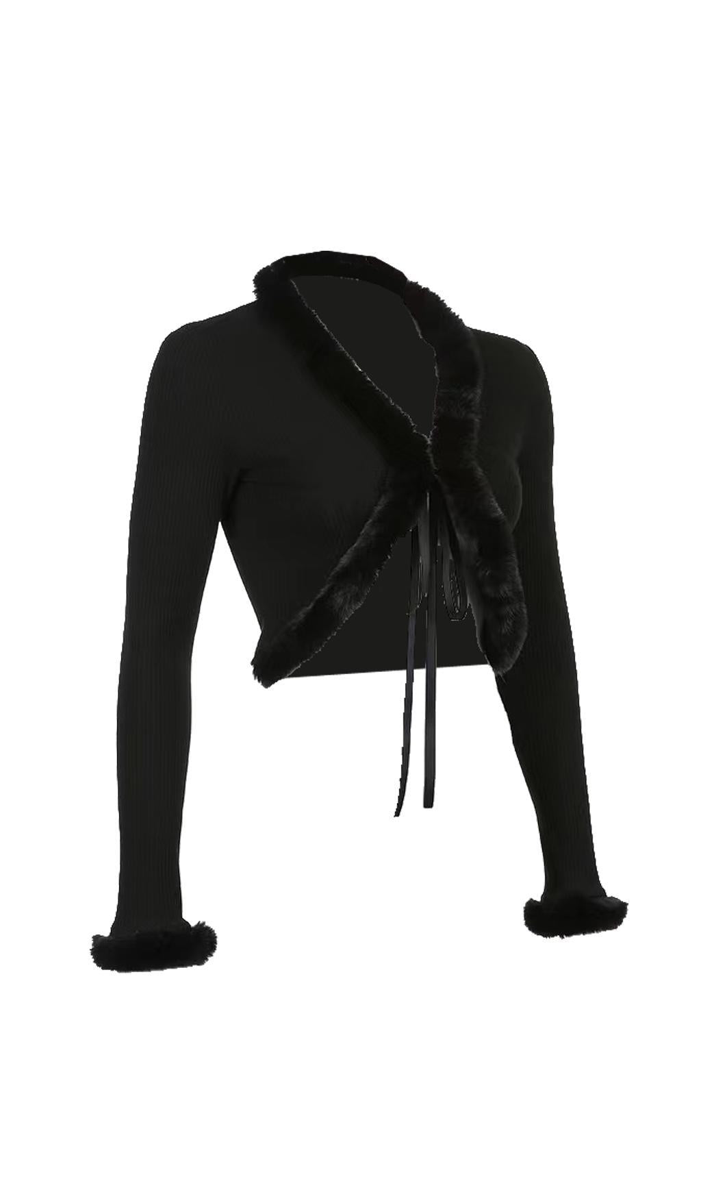 Furry lace cardigan top