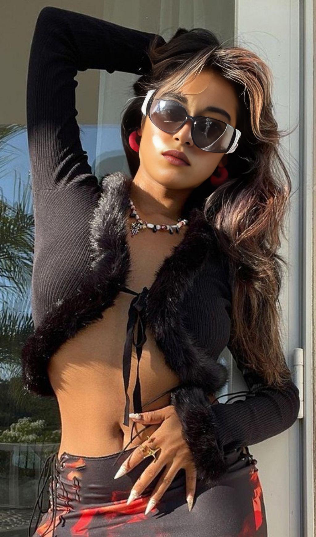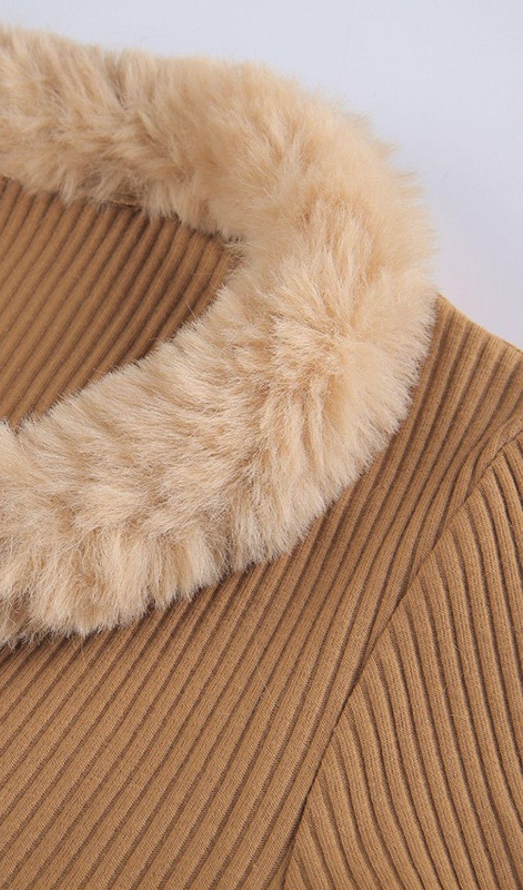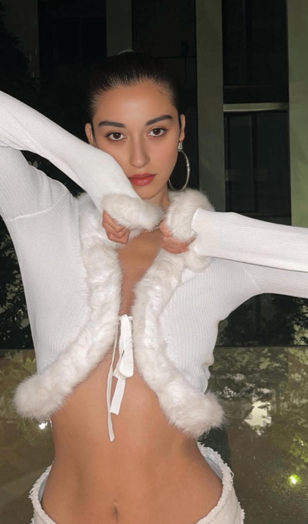 Our Furry Lace Cardigan Top is made from a luxurious blend of velvet and cotton. The combination of these fabrics ensures both softness and durability.