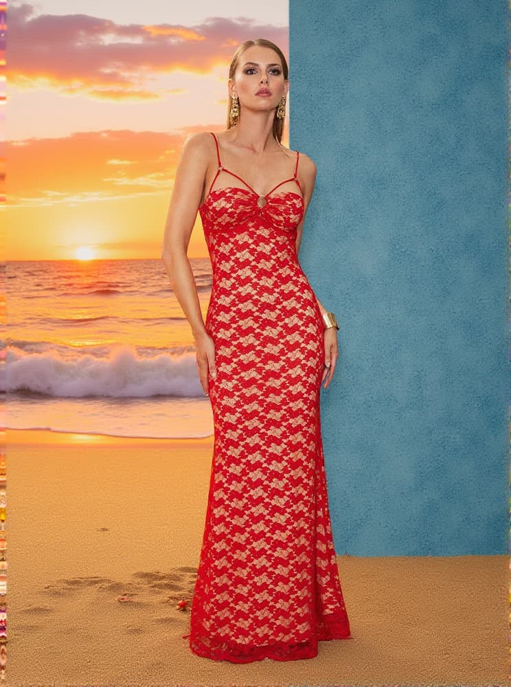 Gabin Spaghetti Floral Lace Maxi Dress
