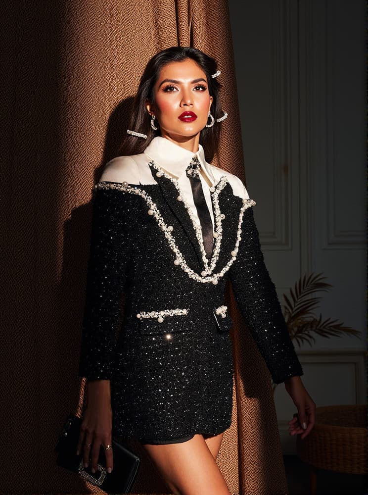 Galilea Embellished Sequin Collar Dress
