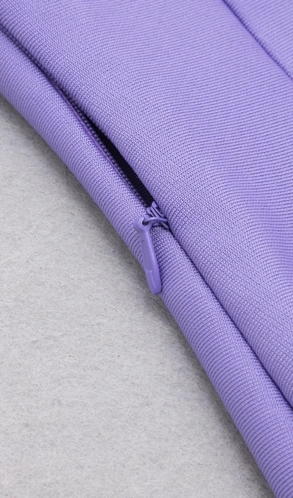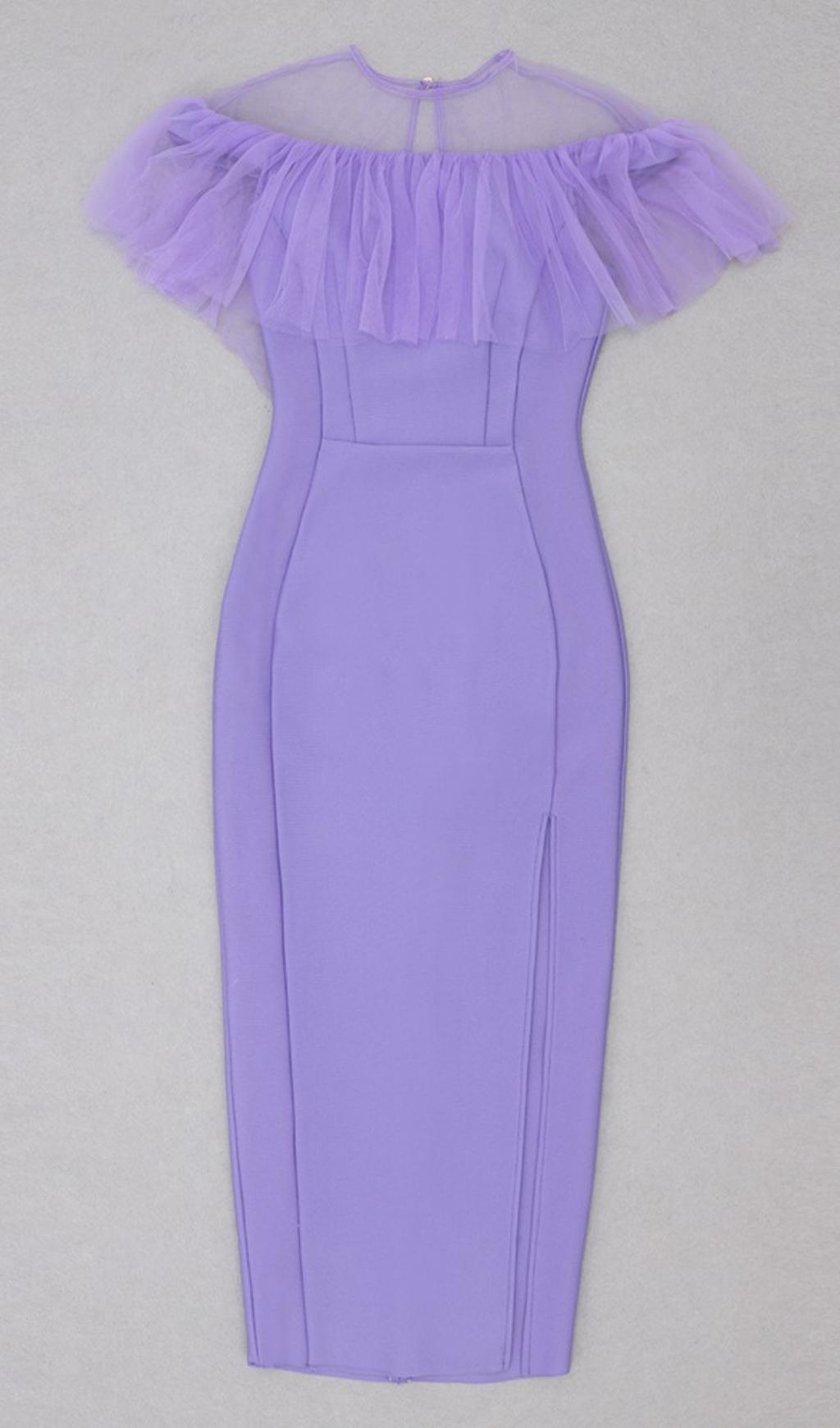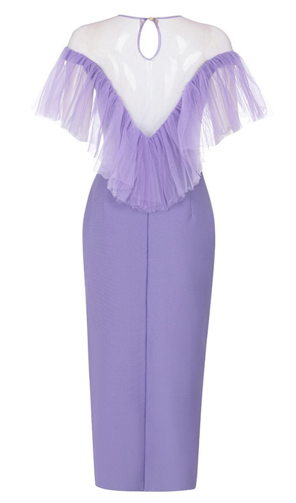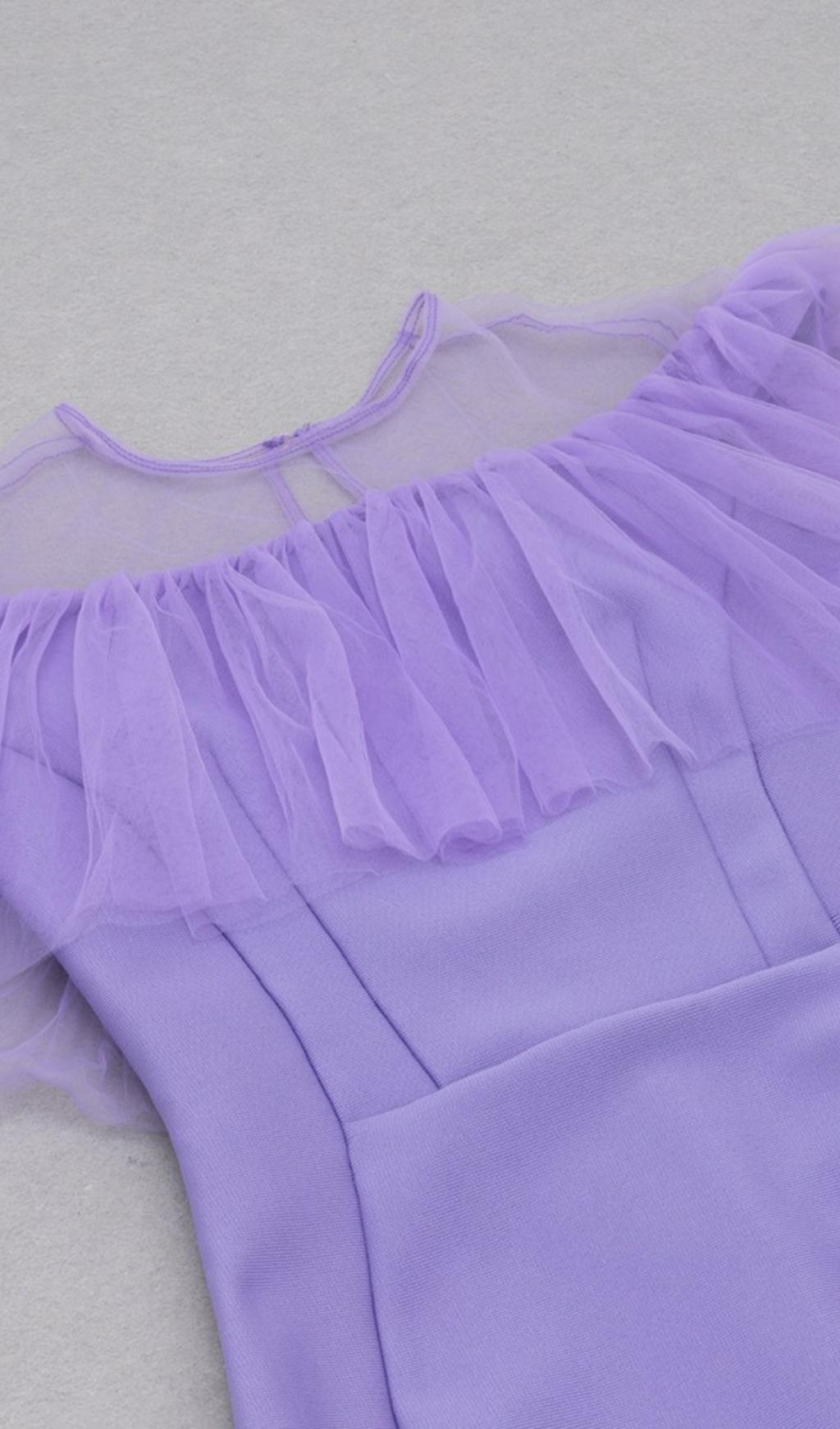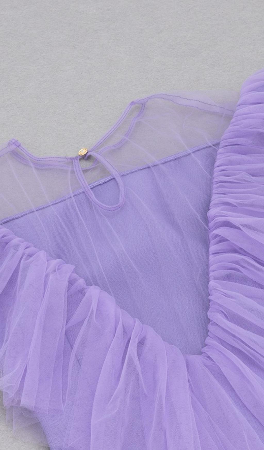GAUZE RUCHED MIDI DRESS IN PURPLE
