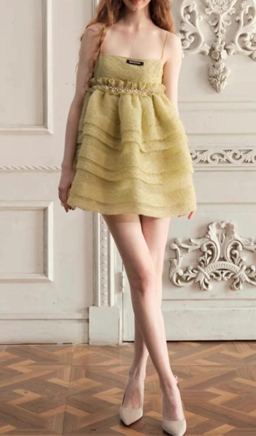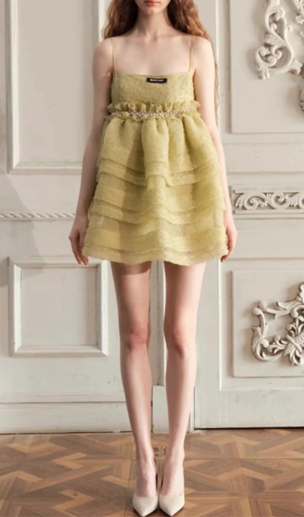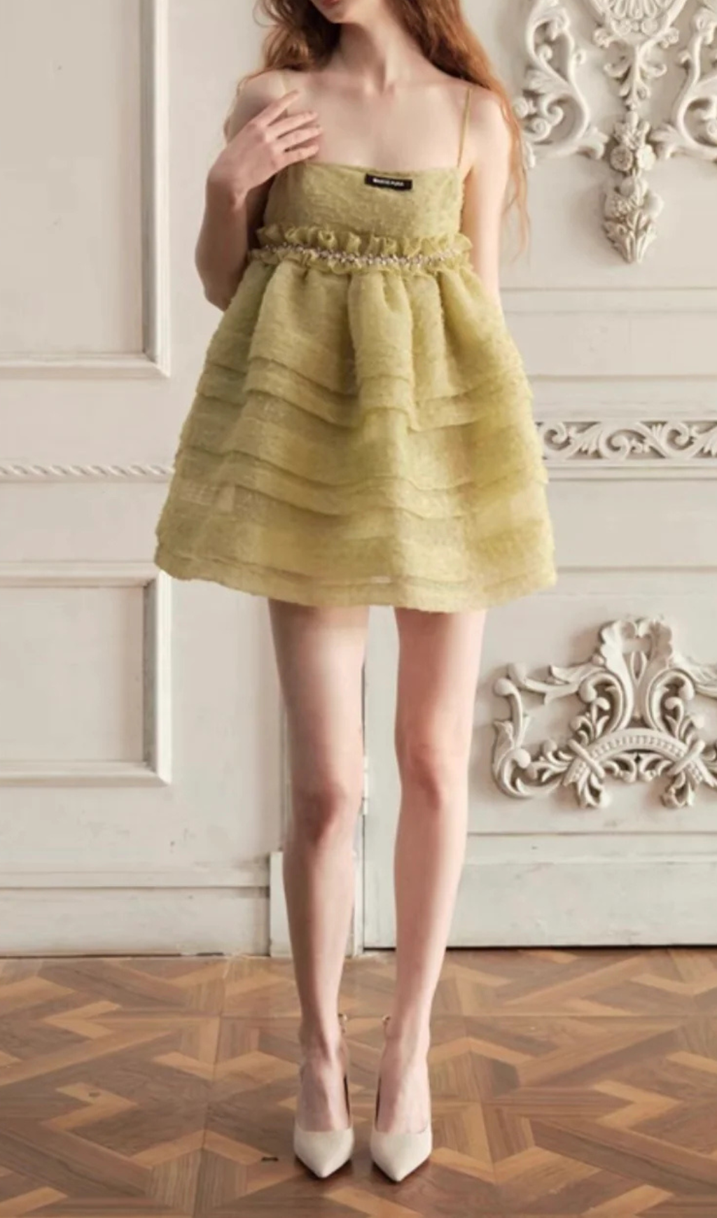 AJDA GEEEN TEXTURED CAMISOLE MINI DRESS