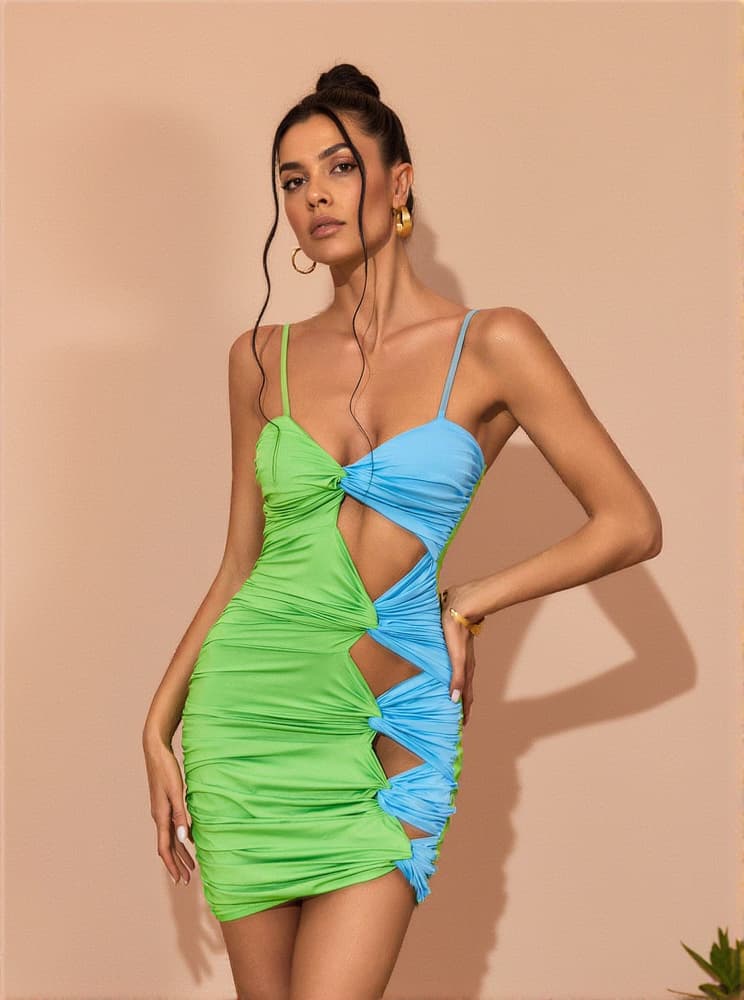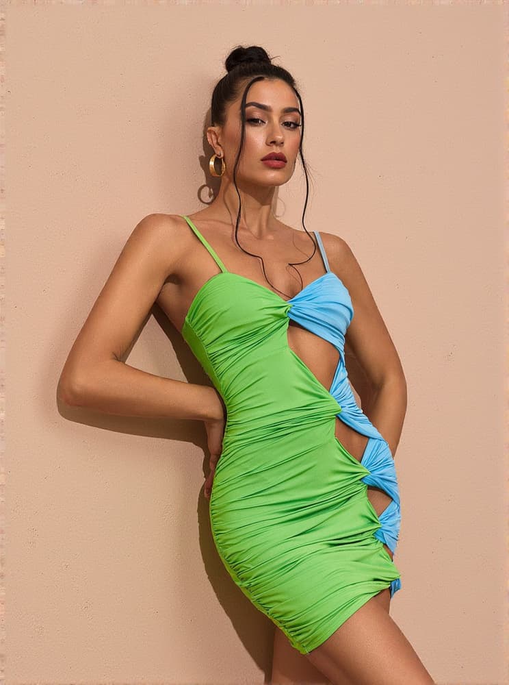This Gemma Spaghetti Cutout Mini Dress is perfectly tailored to flatter your figure. It features delicate spaghetti straps and a cutout front to show off your curves in style. The mini dress is designed to give you a chic look in vibrant green.