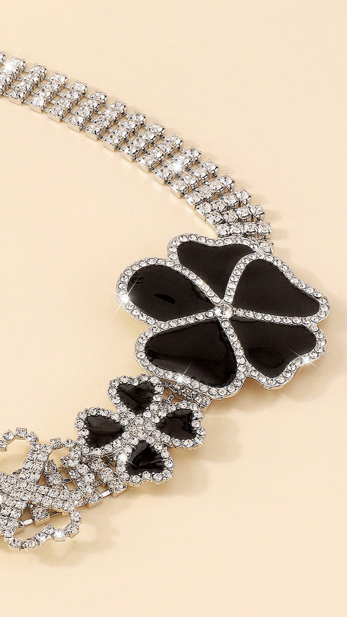 Look lovely in this GEOMETRIC FLOWER RHINESTONE CHOKER! This fashionable choker will add a sparkle to any outfit with its glimmering rhinestones. Perfect for special occasions or just for everyday glam. Shine bright, babe!