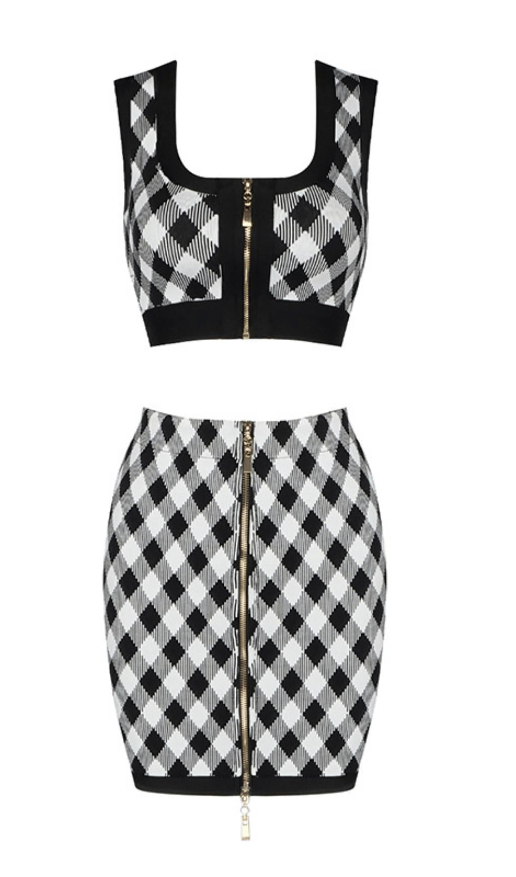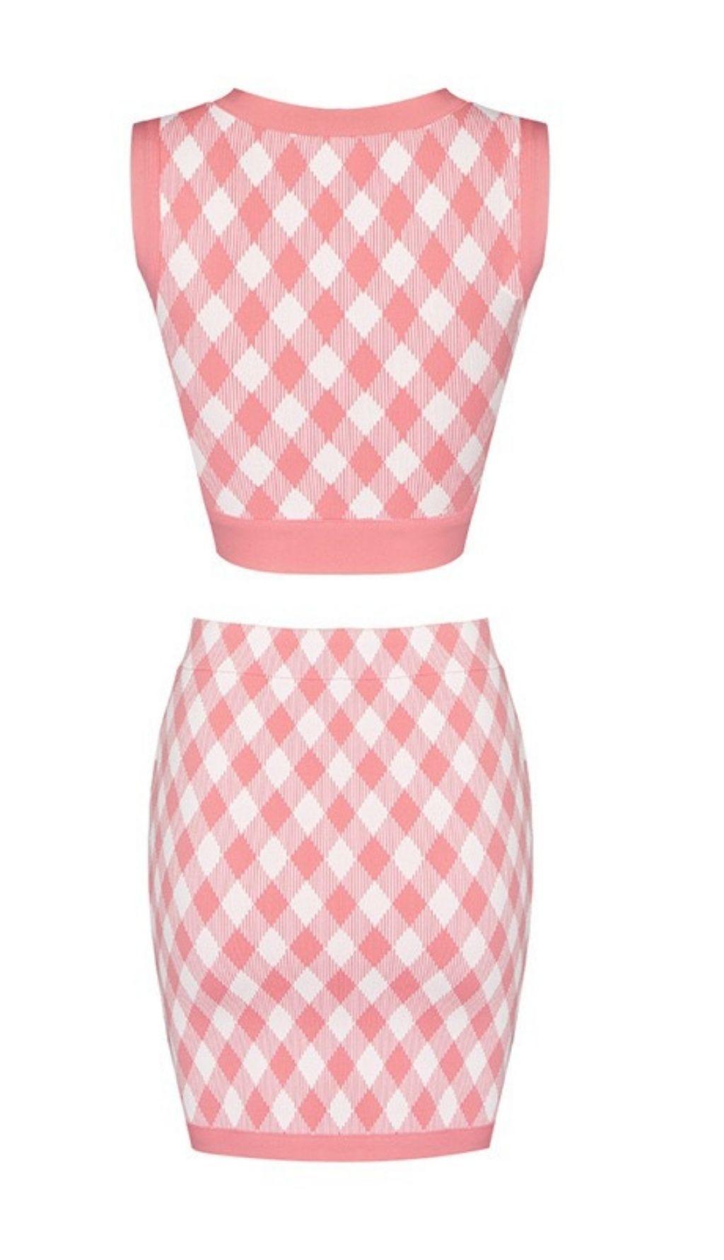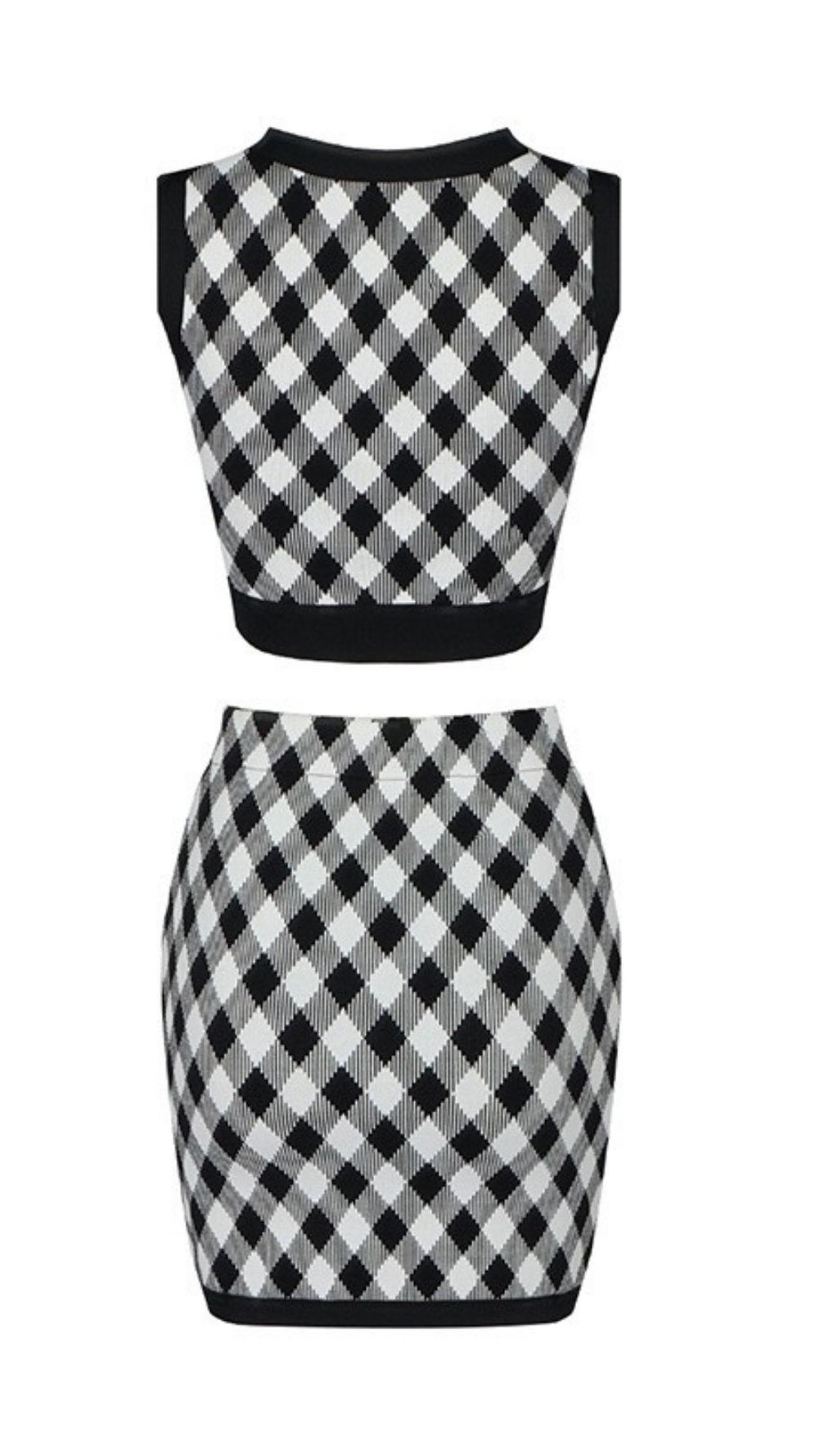 Geometric pattern skirt suit