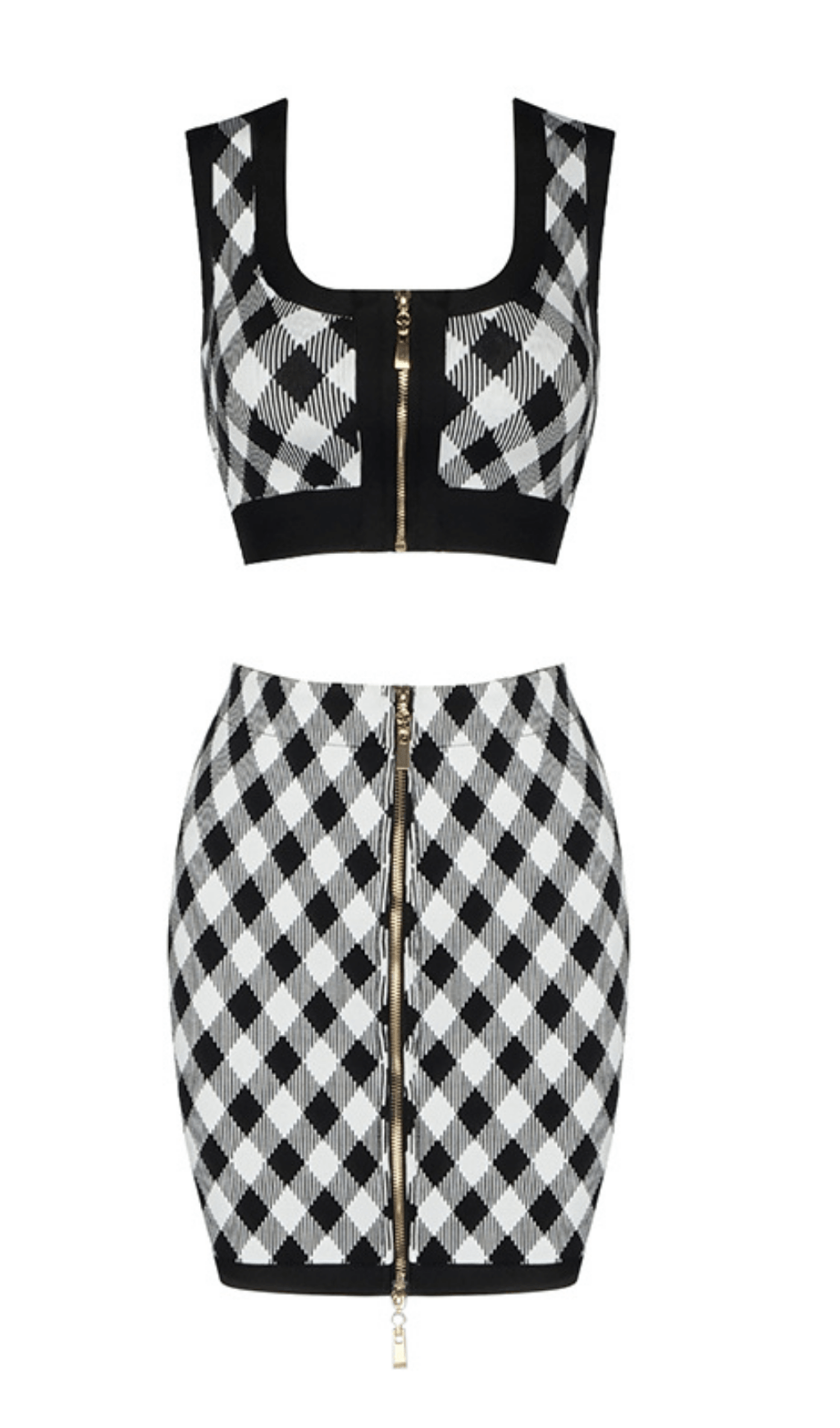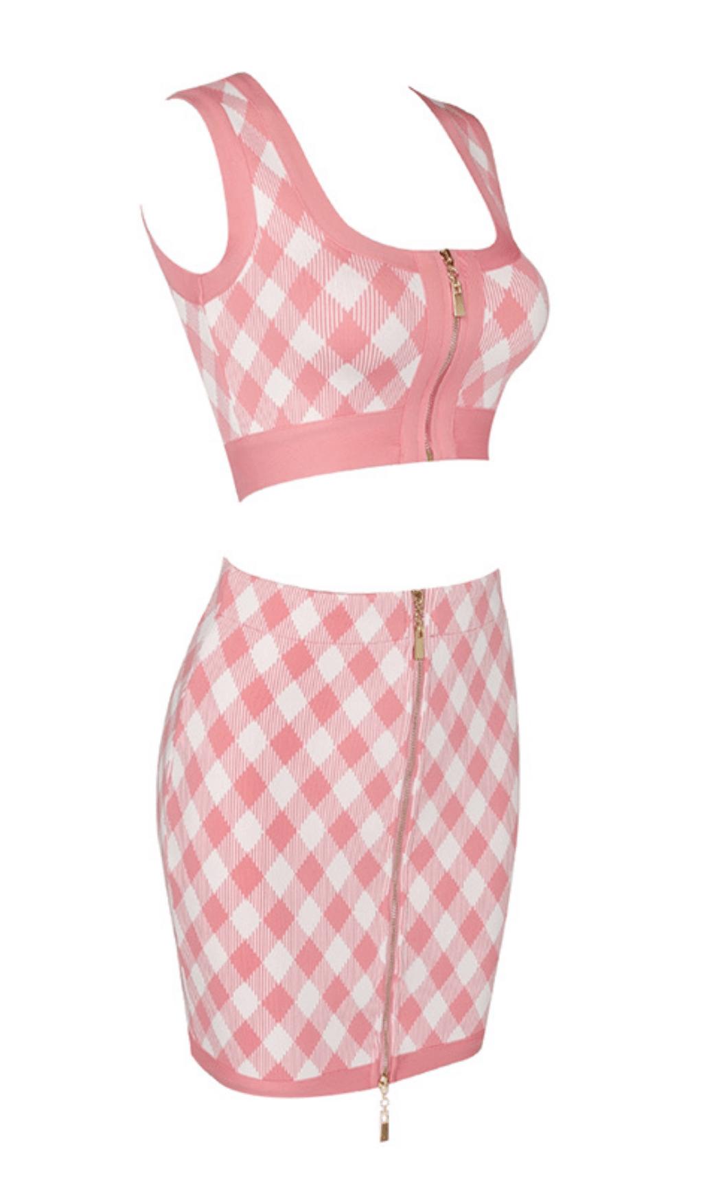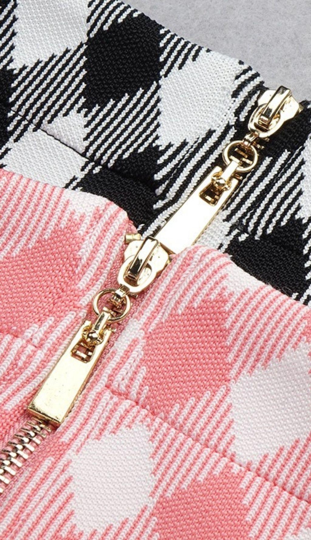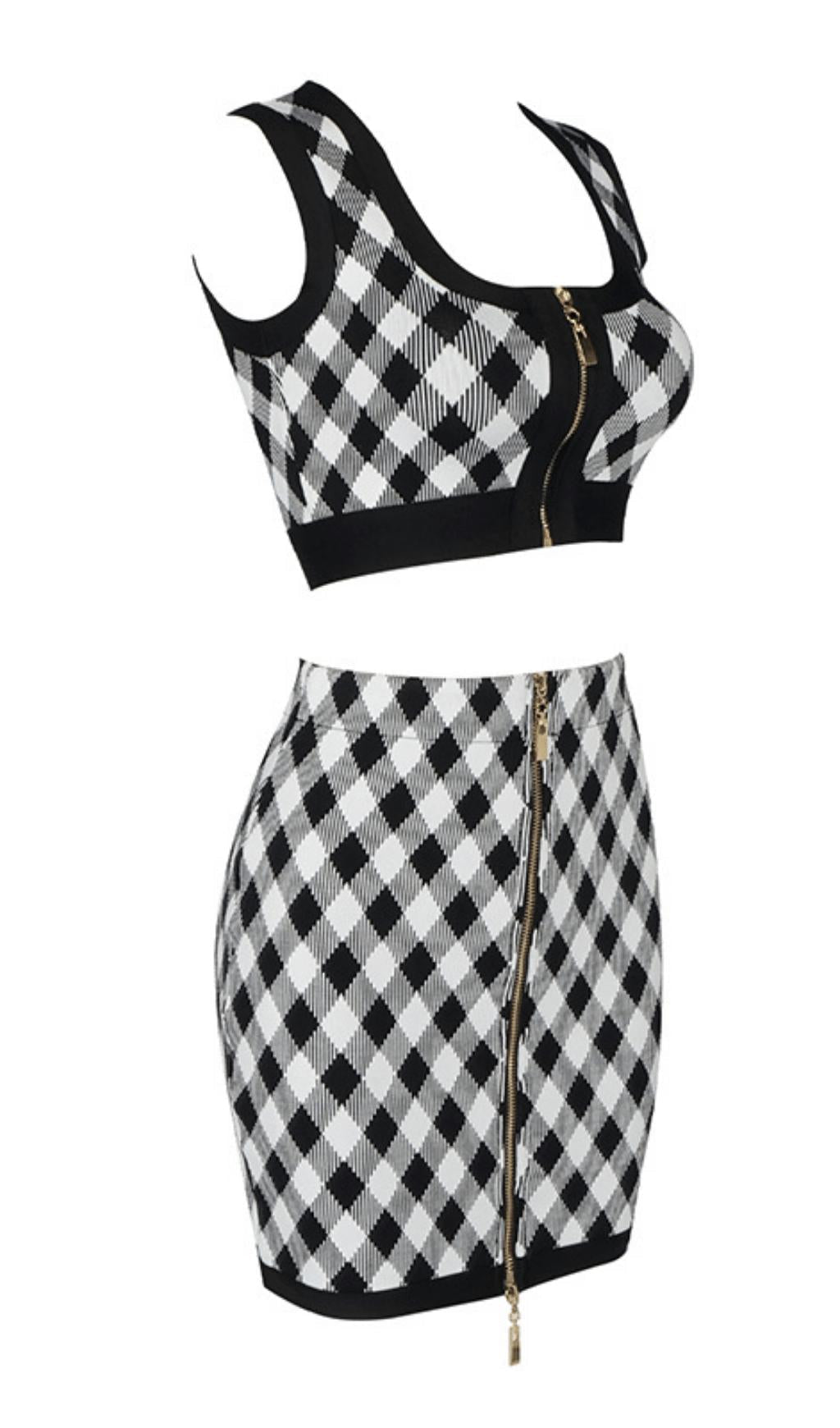 Geometric pattern skirt suit