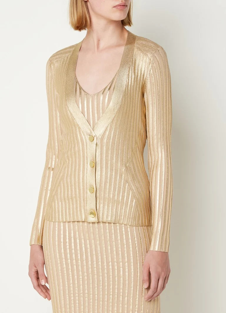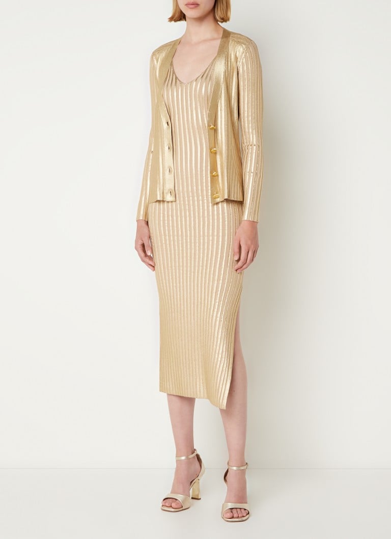Gerti Foil Ribbed Body-Con midi Dress in gold