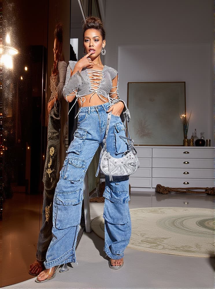 The Giulia Denim Pants In Blue offer a stylish, functional wardrobe piece with a range of features. Crafted from premium denim, these pants feature multiple pockets for convenience, and their timeless design is suitable for a variety of occasions.