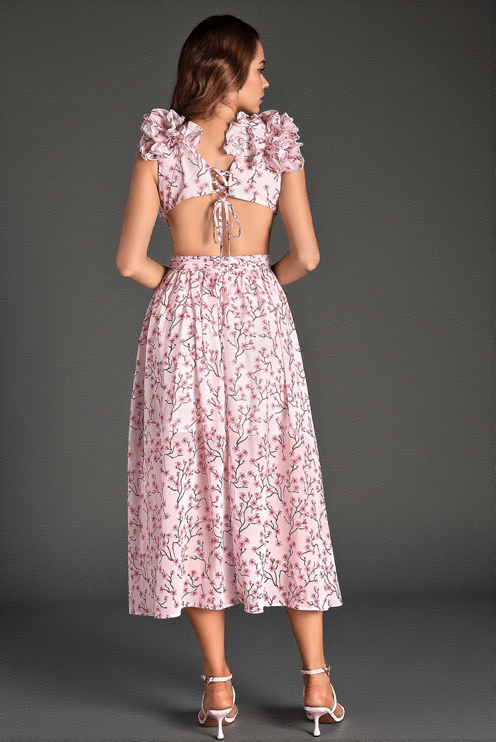 The elegant sleeveless design paired with a sophisticated V-neck cut ensures that the dress not only flatters but also enhances your silhouette. The intricate floral pattern adds an element of romance and beauty, making it a must-have for any fashion-forward woman.