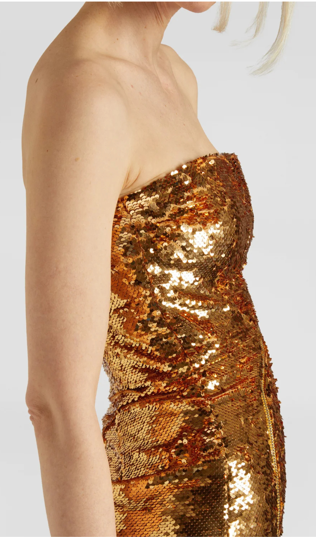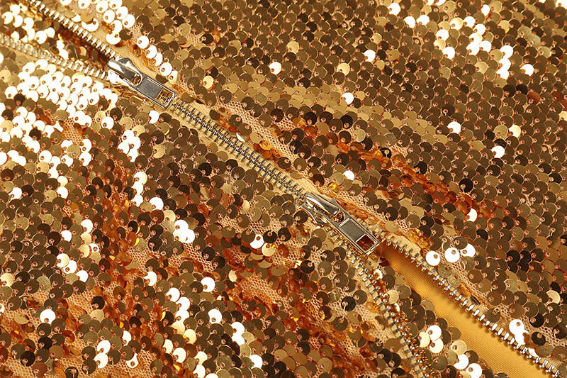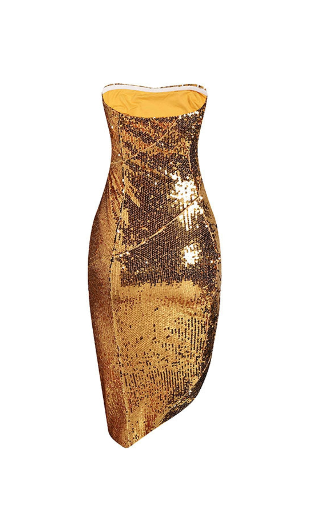 ALILE GOLD ASYMMETRIC SEQUIN MIDI DRESS