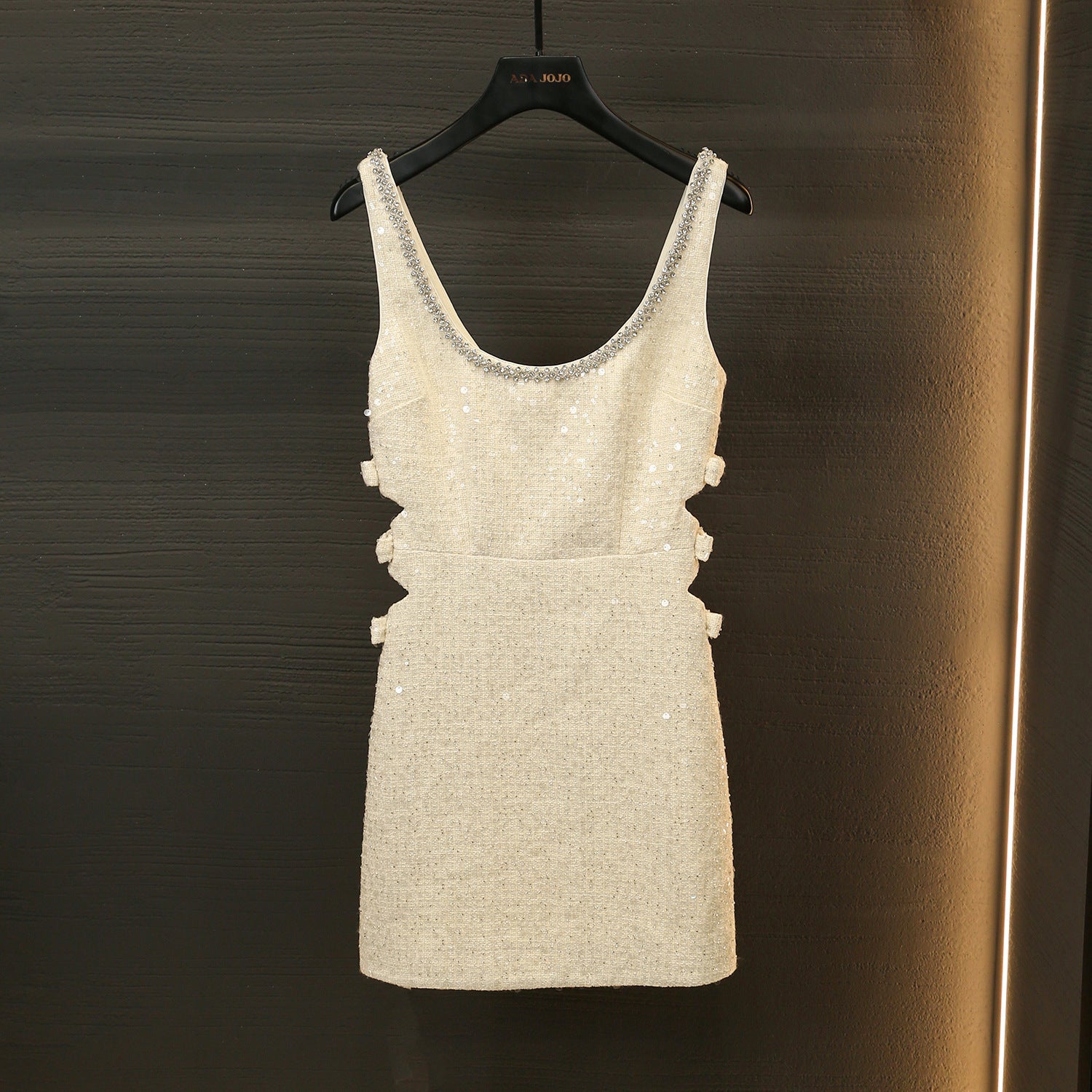 AYAAN IVORY BOUCLE CUTOUT MINI DRESS