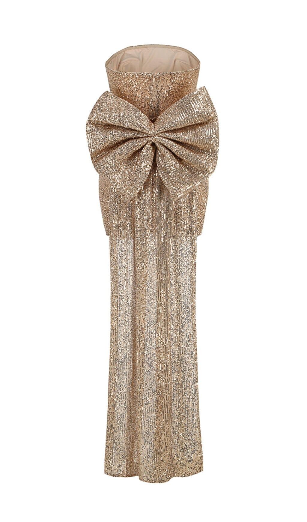 GOLD STRAPLESS BOW MINI DRESS