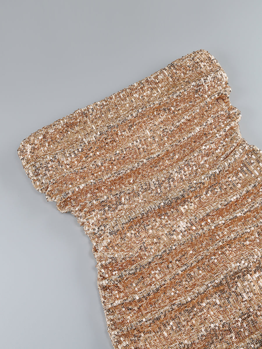 AKILAH GOLD STRAPLESS BOW MINI DRESS