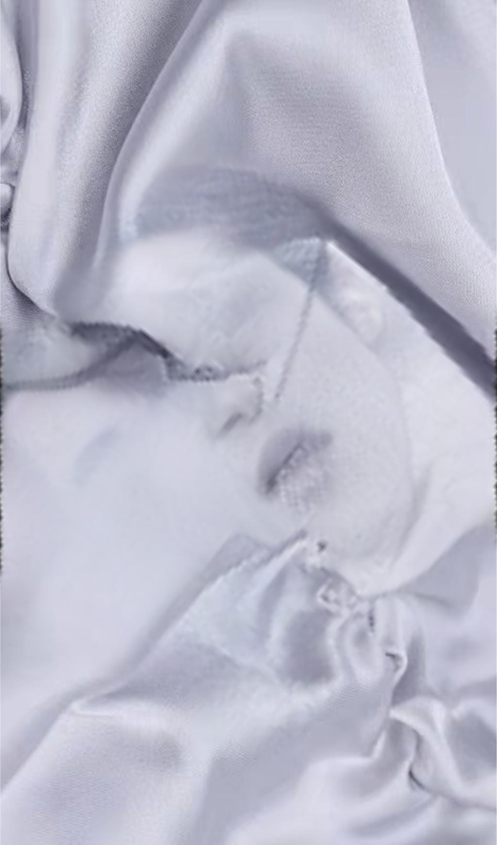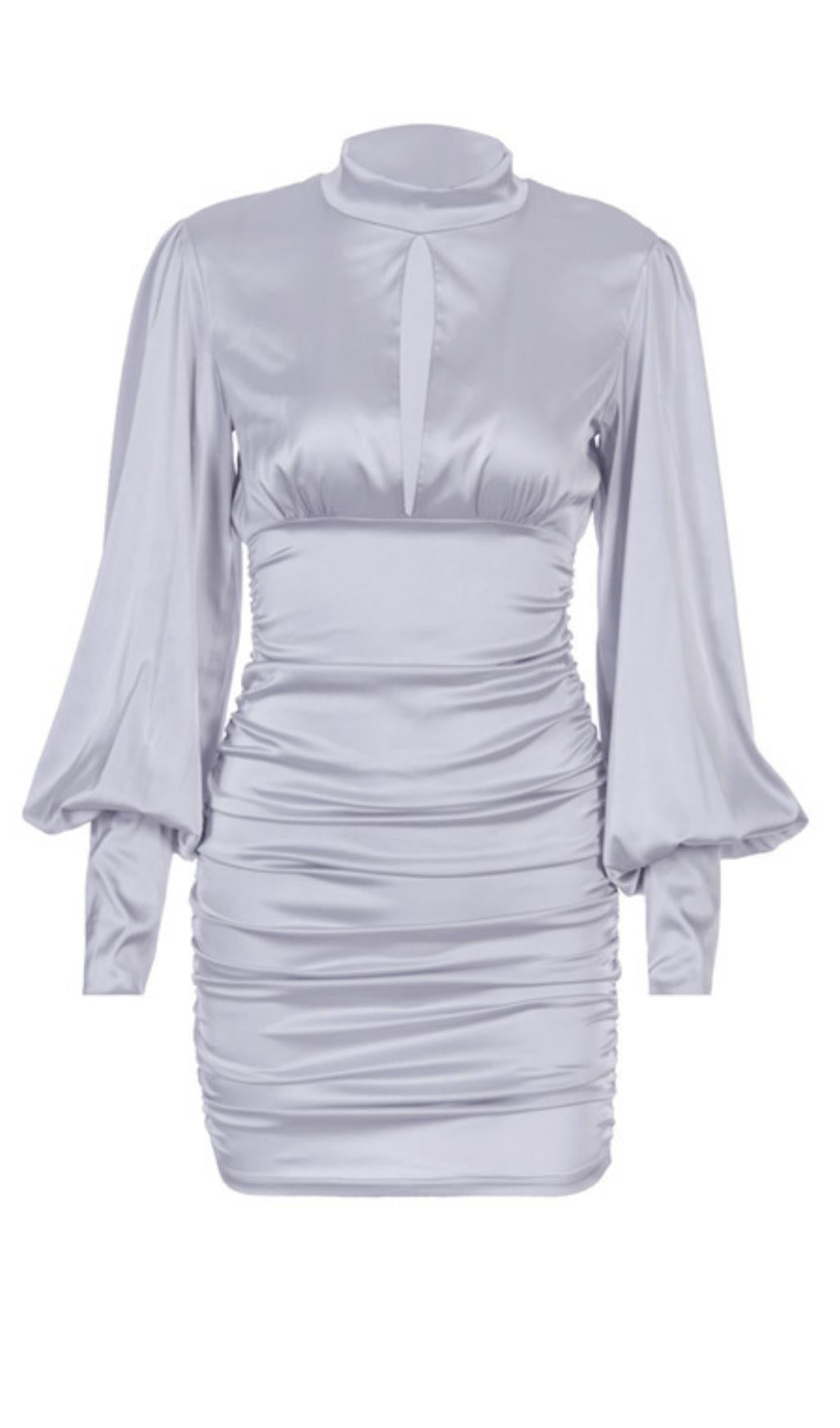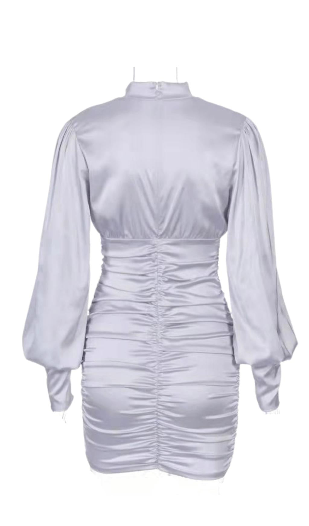 WHITE SATIN HIGH NECKED DRAPED DRESS