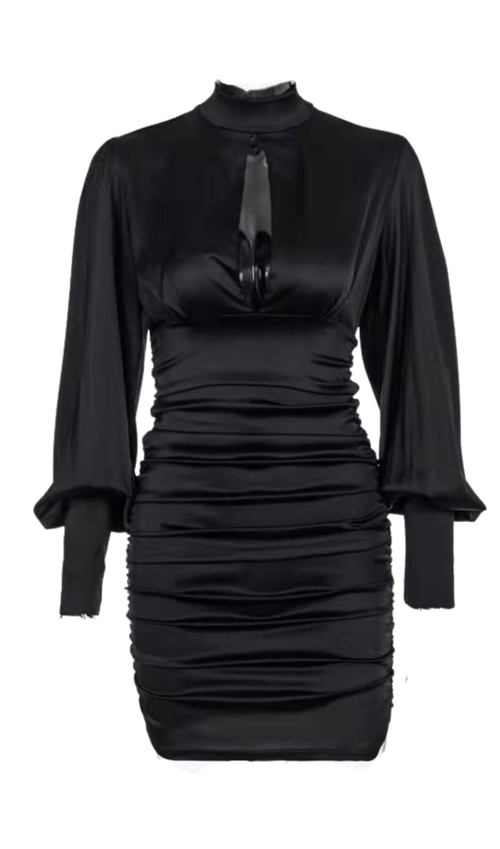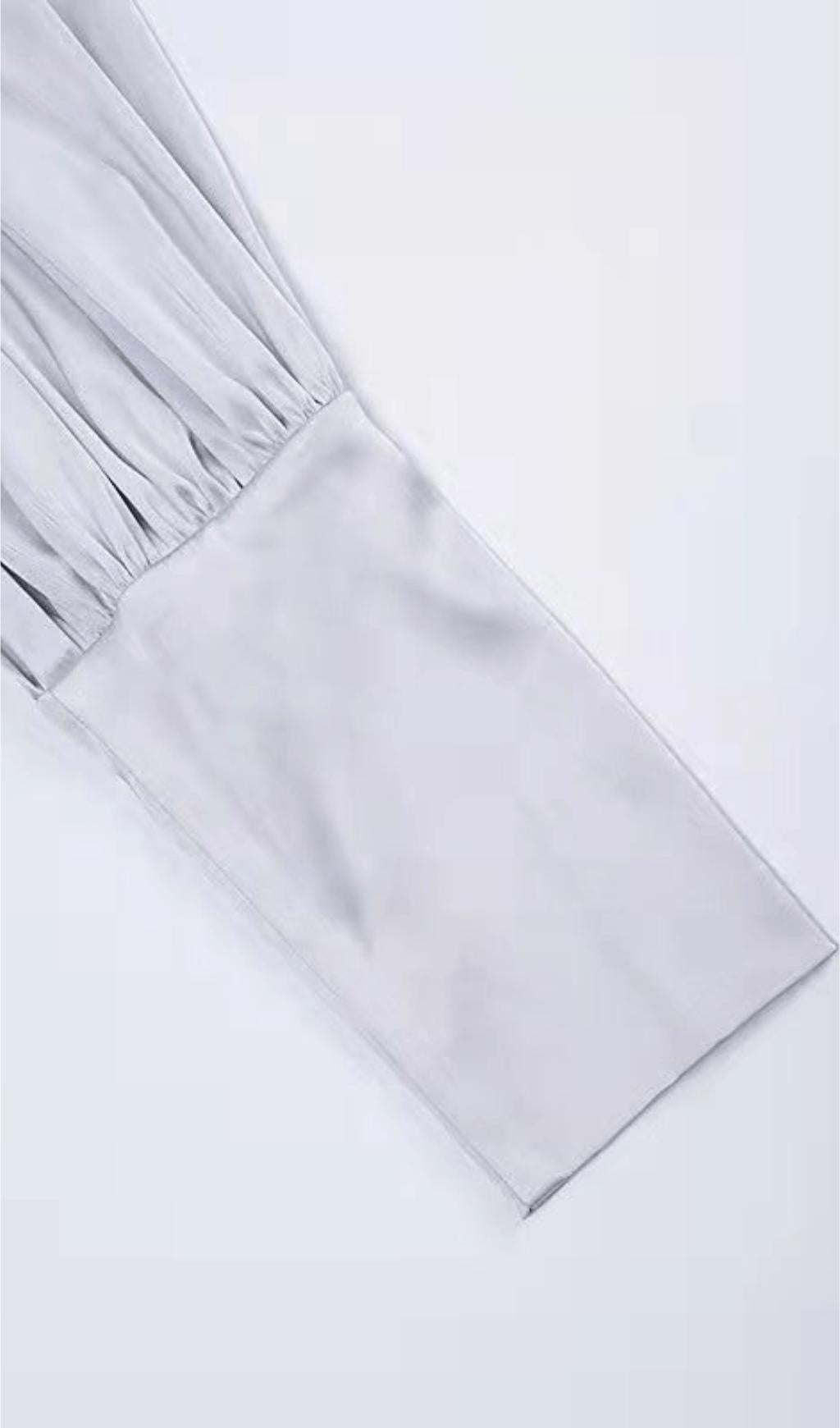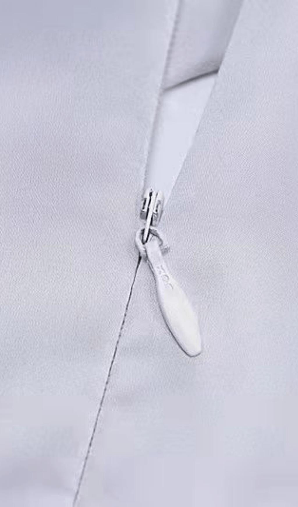 WHITE SATIN HIGH NECKED DRAPED DRESS