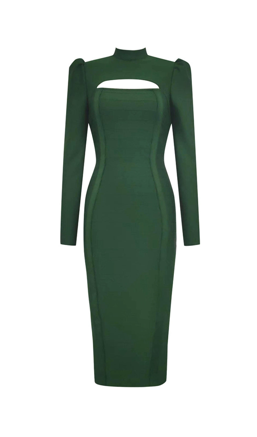 ADY GREEN CUTOUT BANDAGE MIDI DRESS