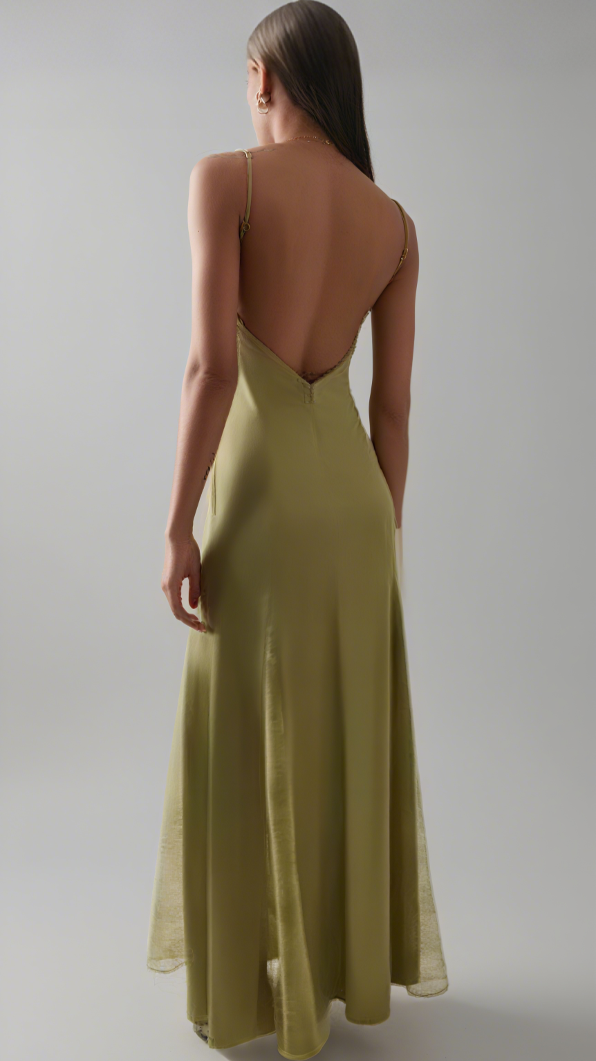 Green Exclusive Lace-Inset Silk Maxi Slip Dress