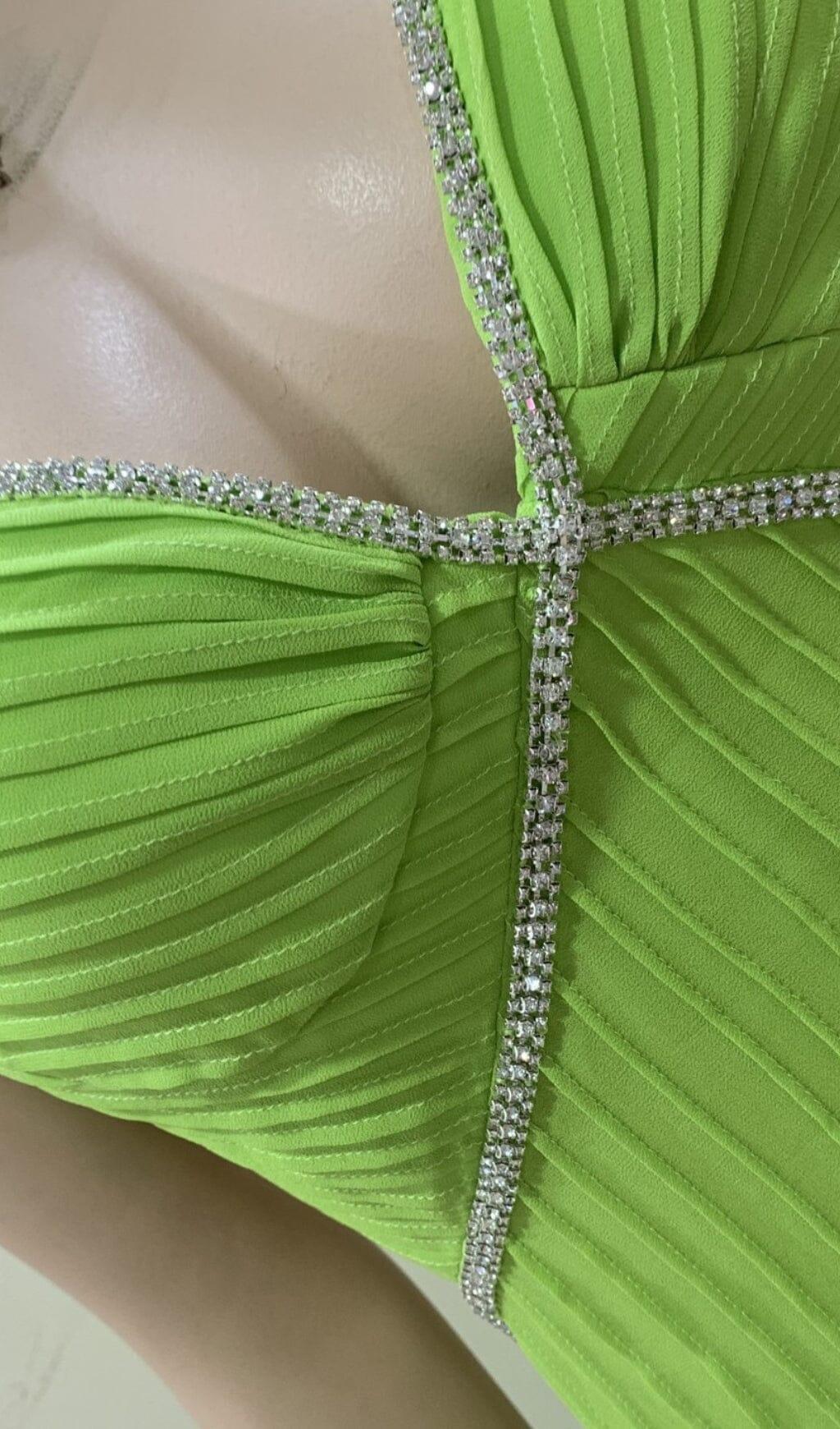 GREEN PLEATED SLIT MAXI DRESS
