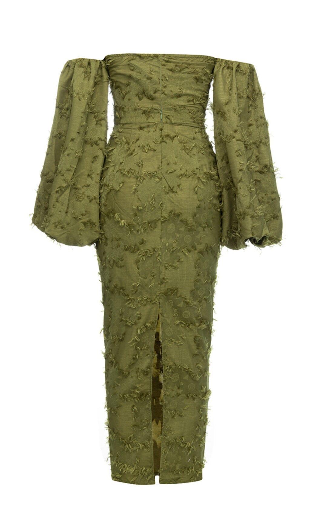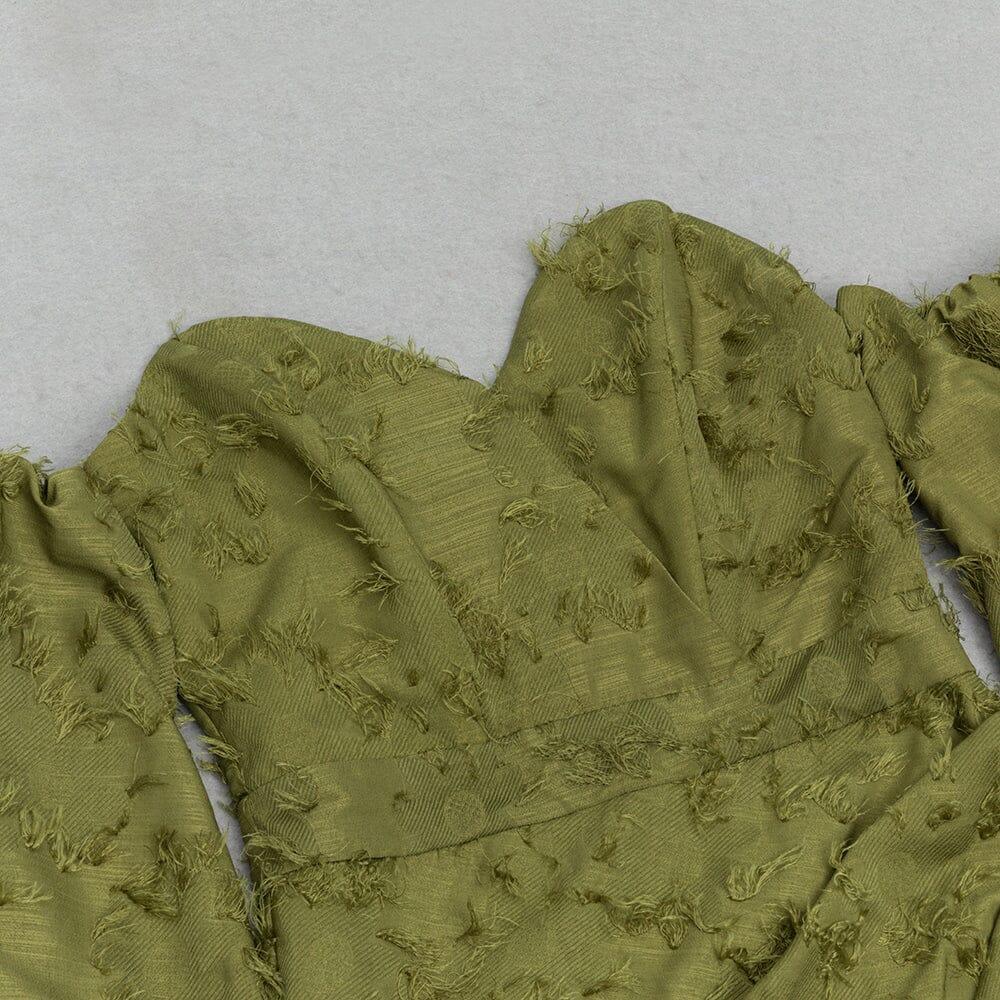 GREEN PUFF SLEEVE TIGHT SPLIT DRESS