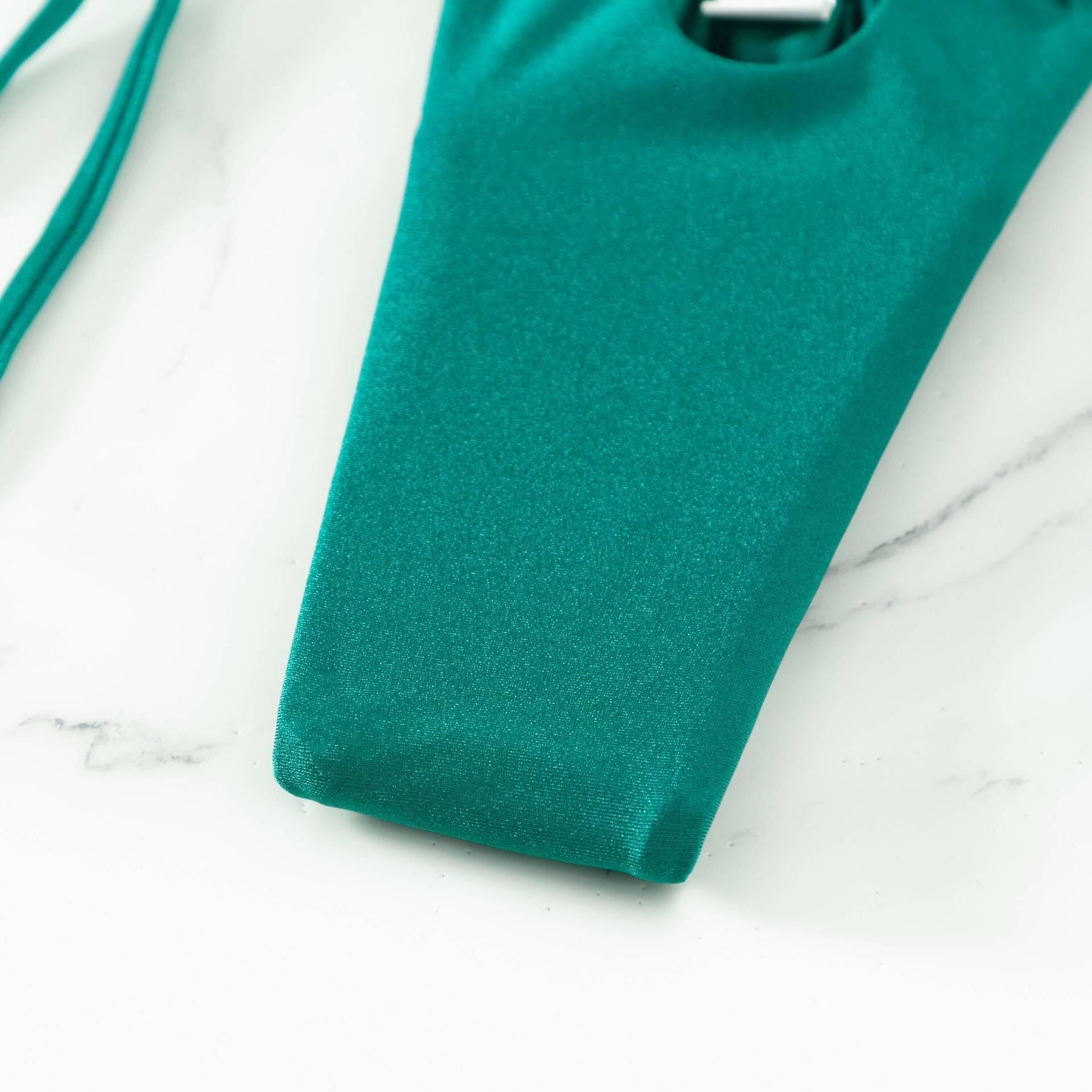 • The vibrant green color of this bikini is sure to turn heads and make a statement.