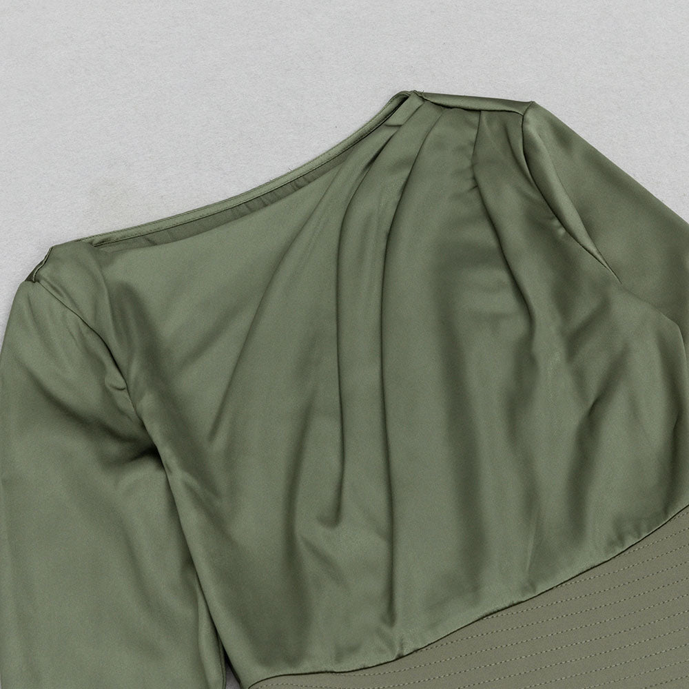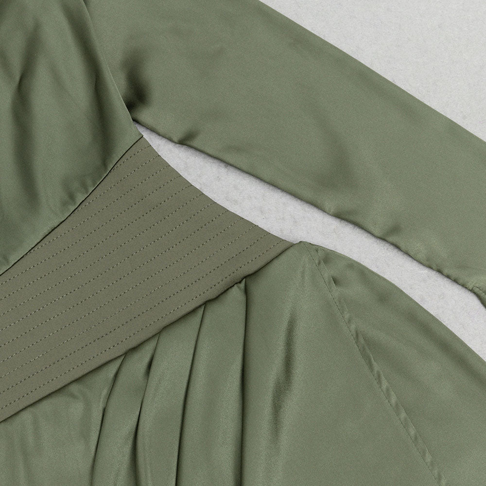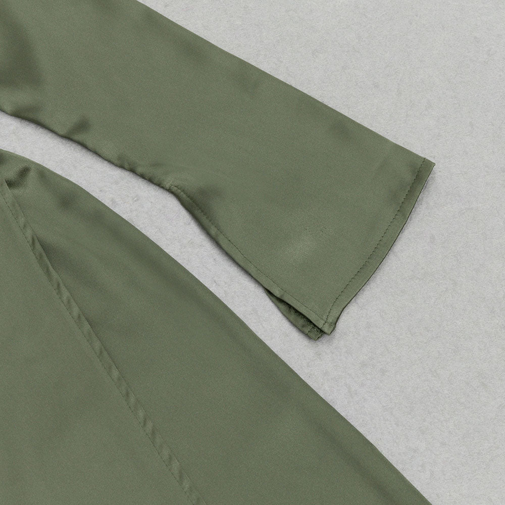 Crafted from high-quality satin, this dress exudes sophistication and exclusivity. The rich green hue and long sleeves add a touch of glamour, making it the perfect choice for any special occasion. Elevate your style with this masterpiece.