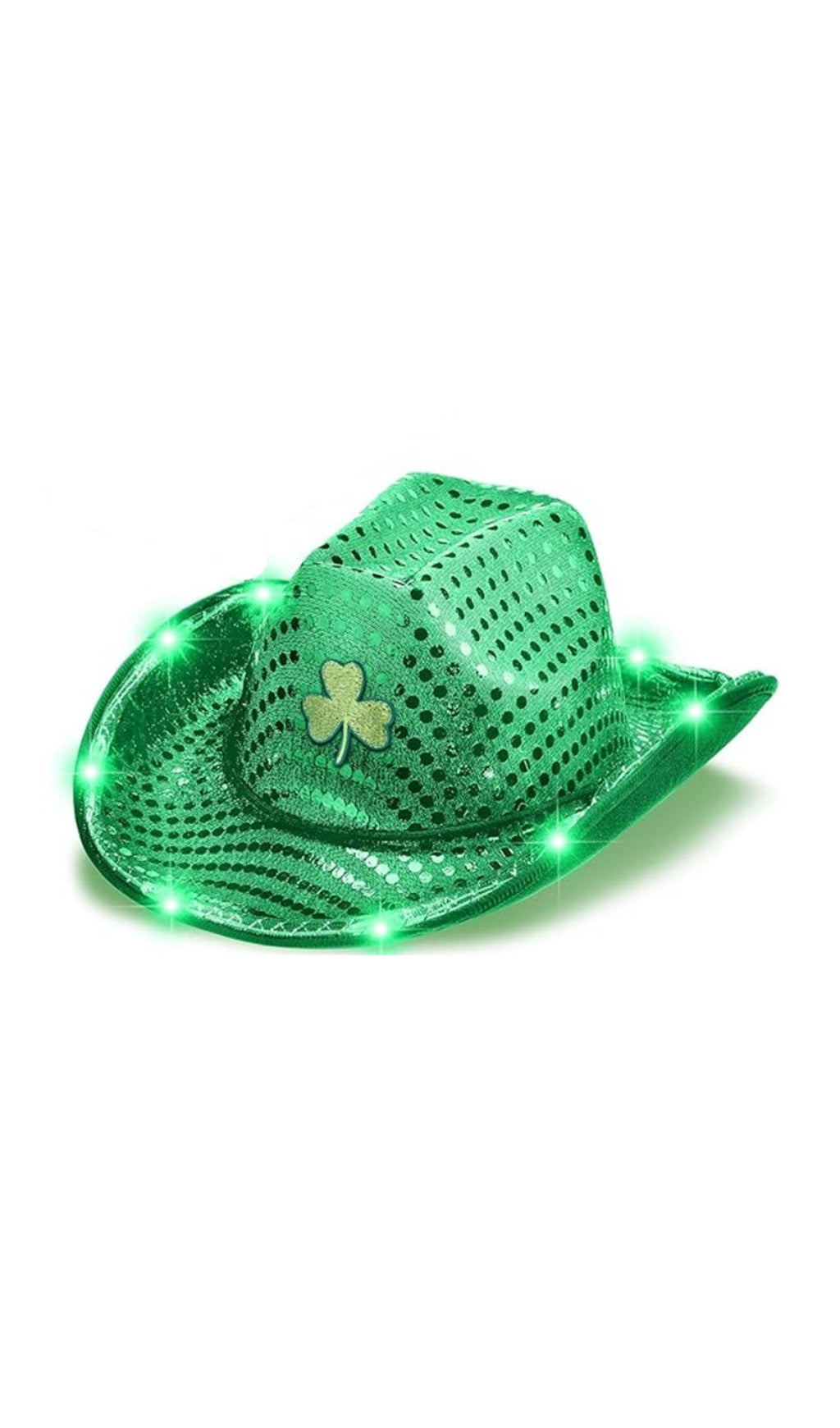 Green Sequined Shamrock With Lamp Cowboy Hat