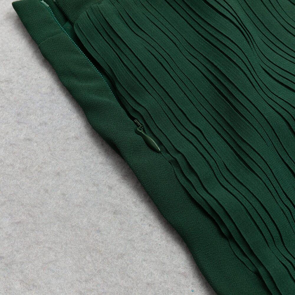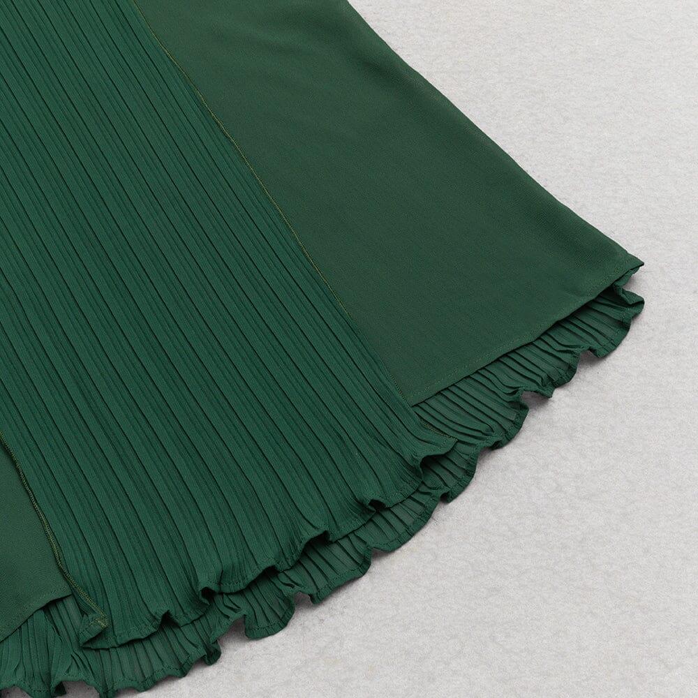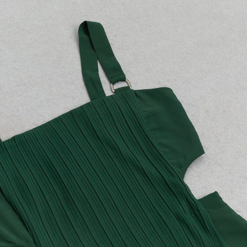 GREEN SLEEVELESS STRAP PLEATED DRESS