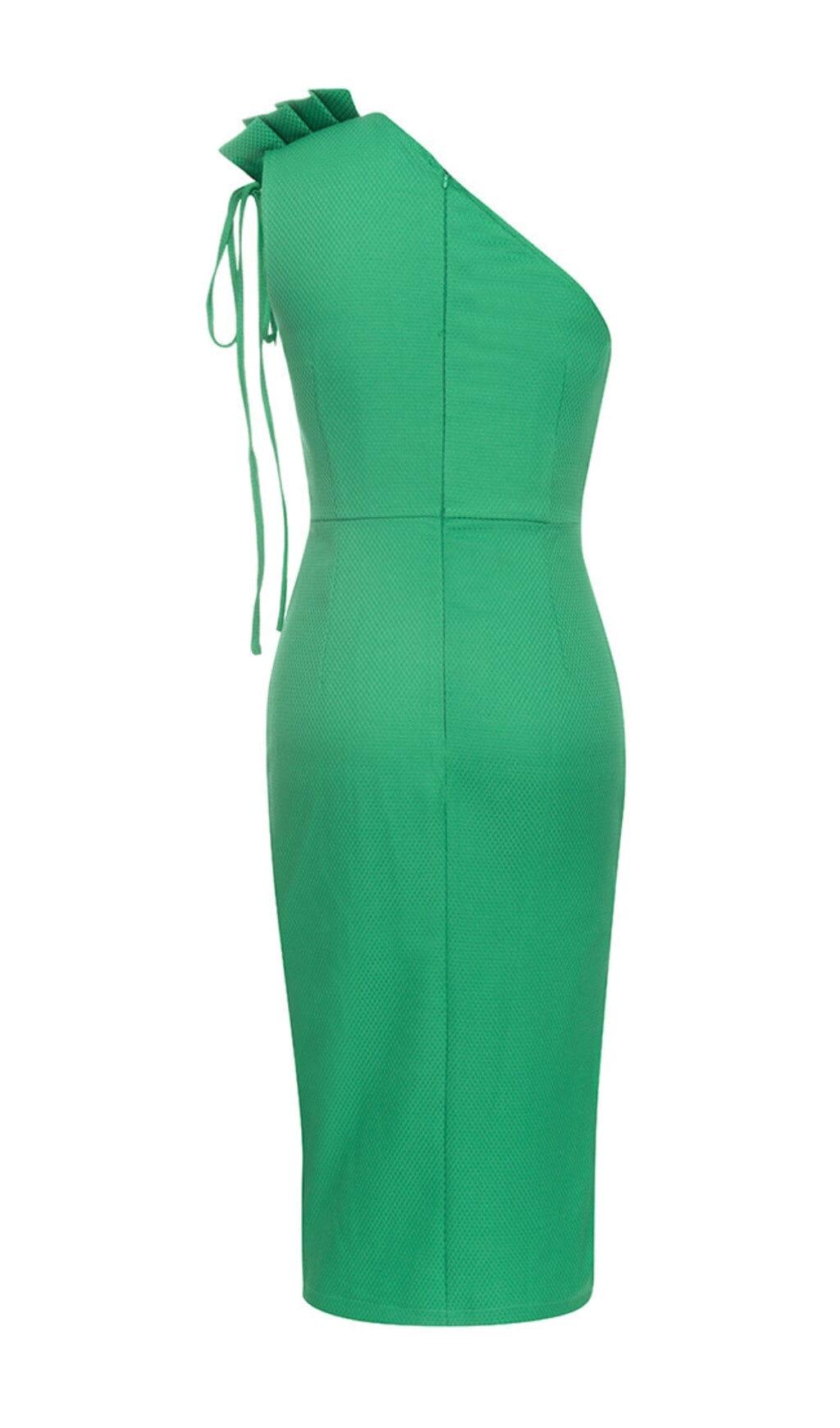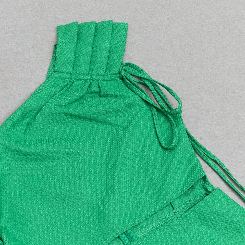 GREEN SLOPING SHOULDER HOLLOW FASHION DRESS