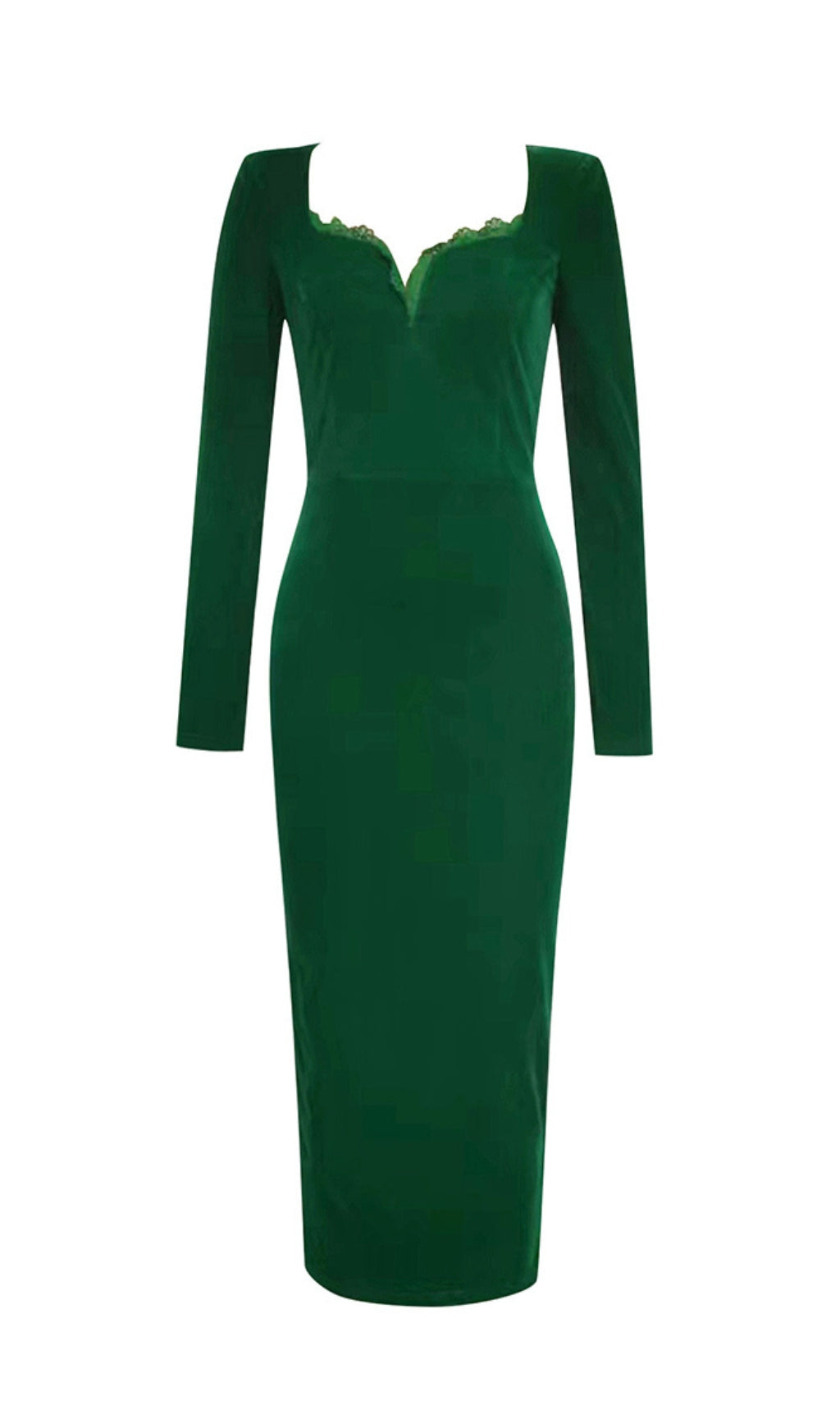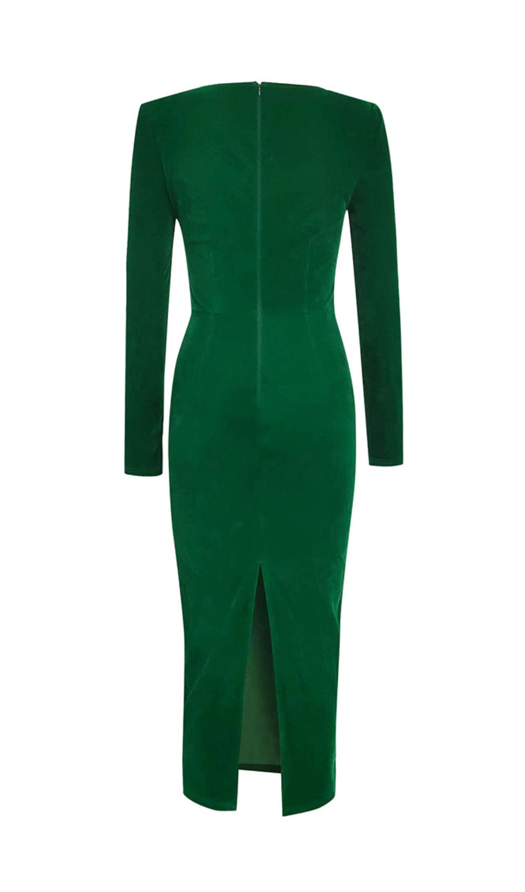 AART GREEN SPLIT BACK BODYCON MIDI DRESS