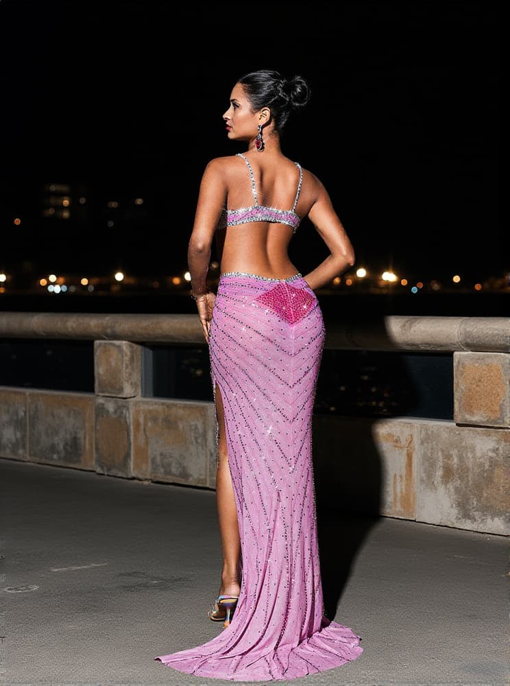 Expertly crafted with a stunning cutout design, this Grey Crystal Cutout Maxi Dress in Hot Pink is a must-have for any fashion-forward individual. The striking combination of grey and hot pink elevate this dress to a bold and sophisticated level, perfect for any special occasion. Stand out from the crowd in this unique and elegant maxi dress.