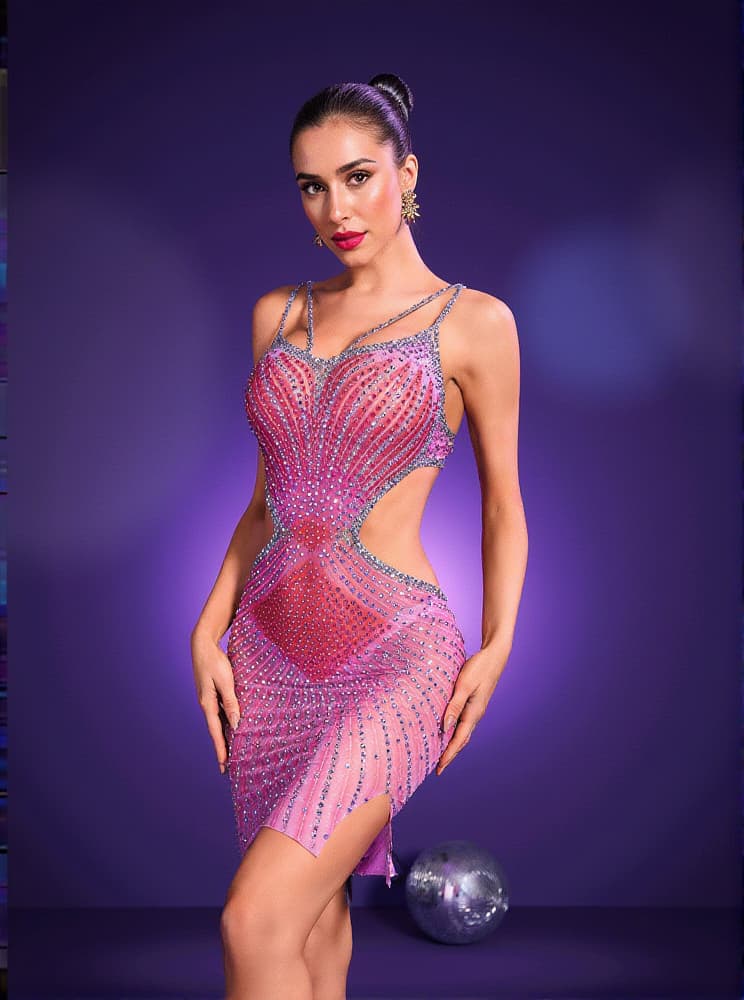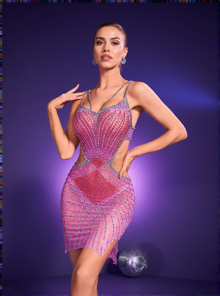 Grey Crystal Cutout Mini Dress In Hot Pink