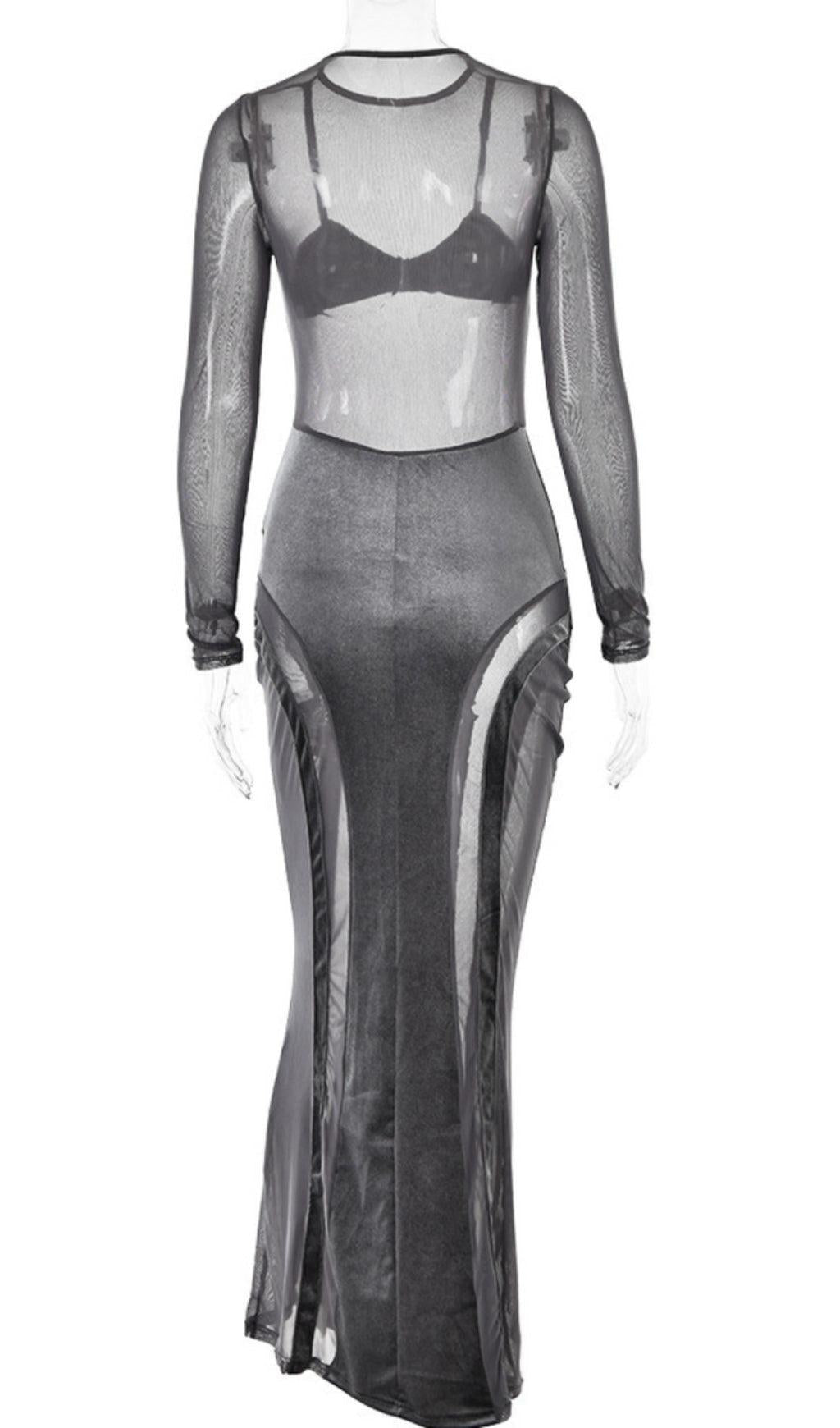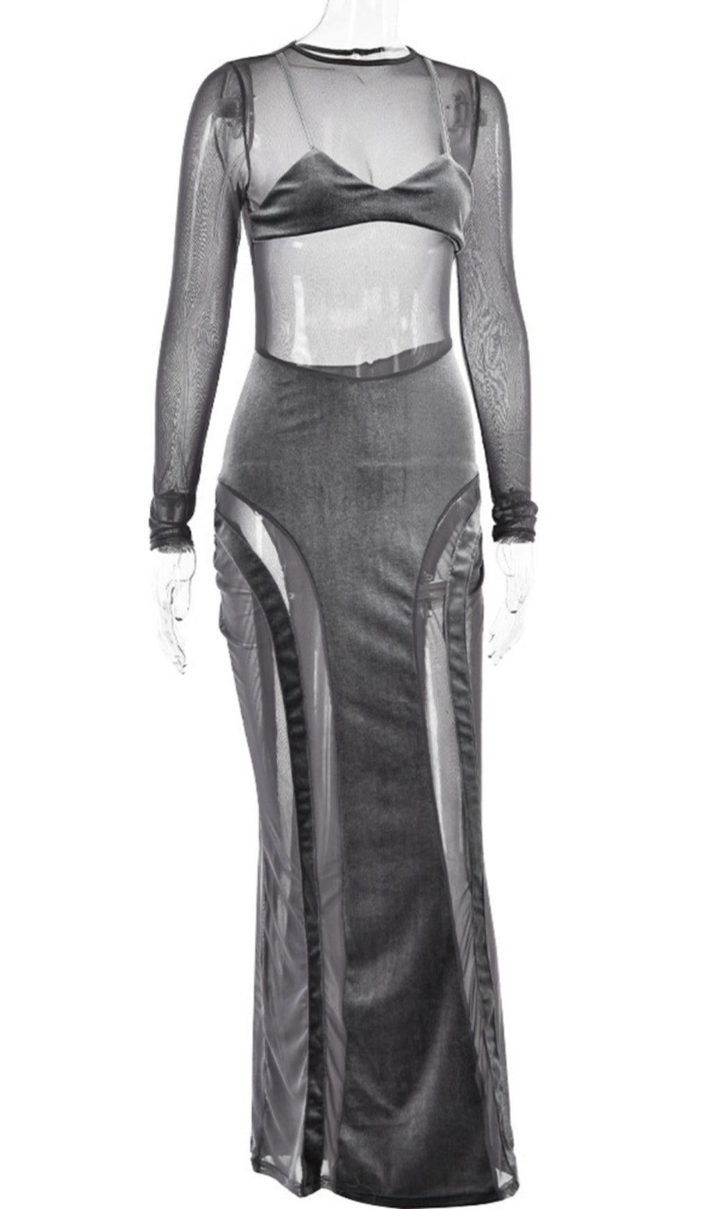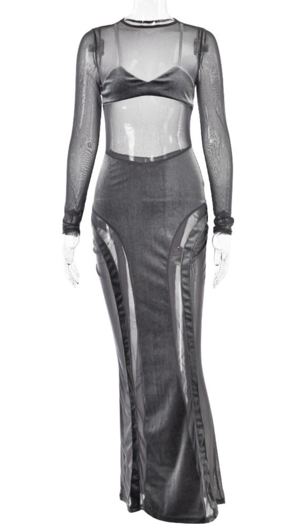 GREY VELVET MESH MAXI DRESS