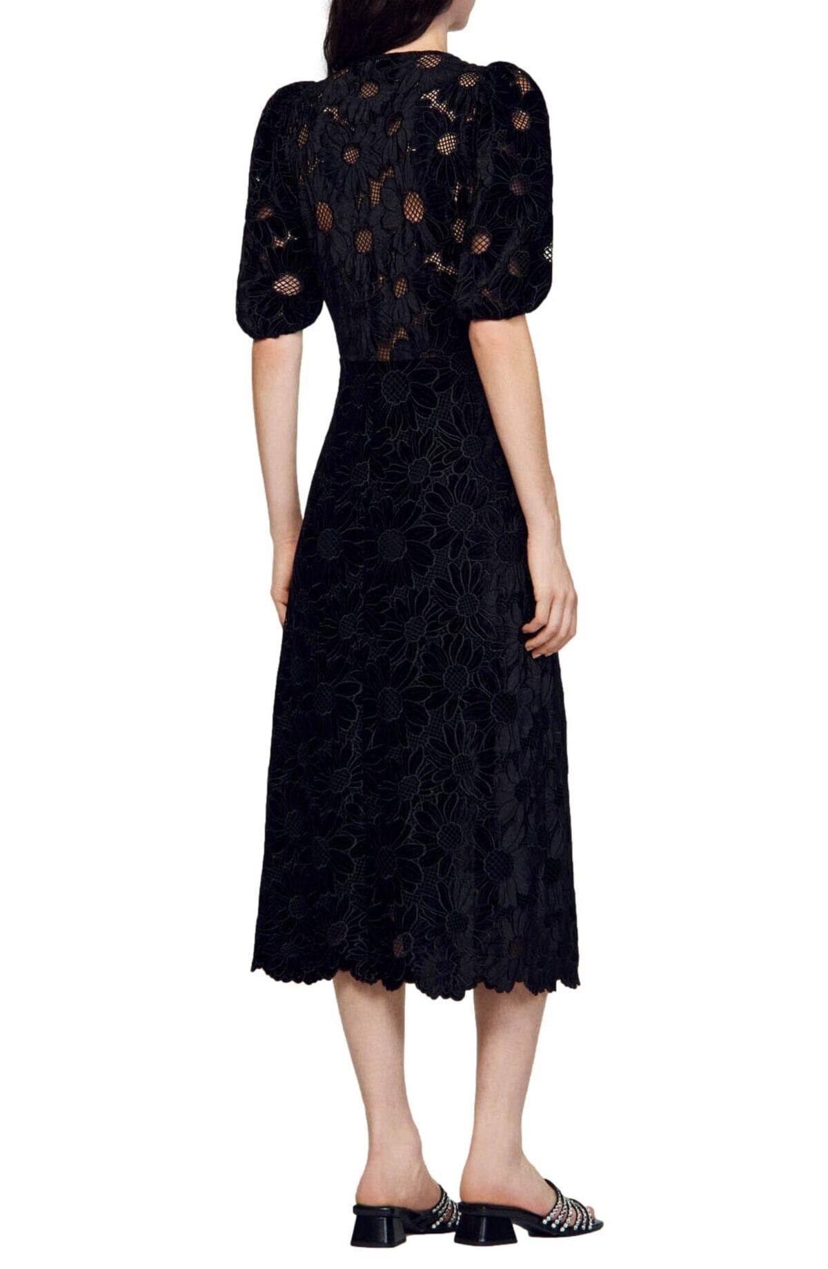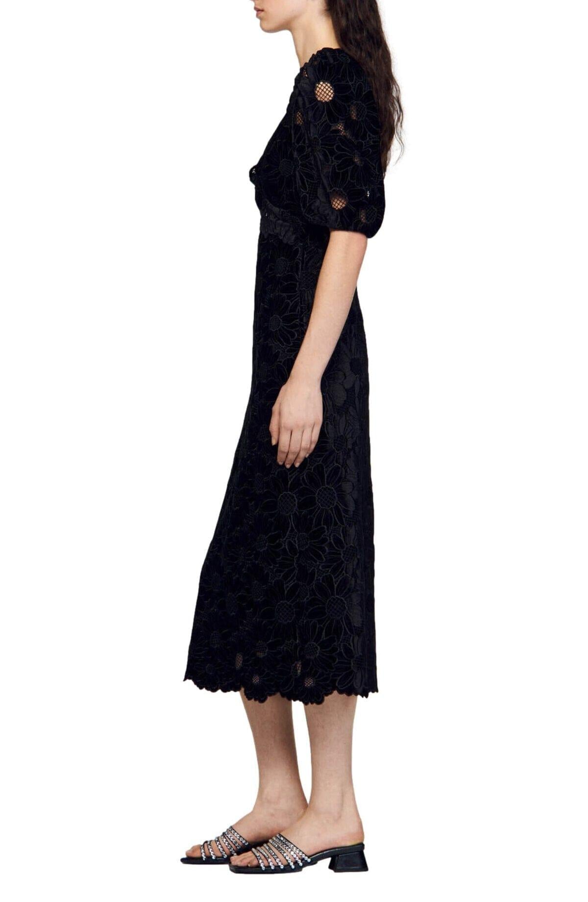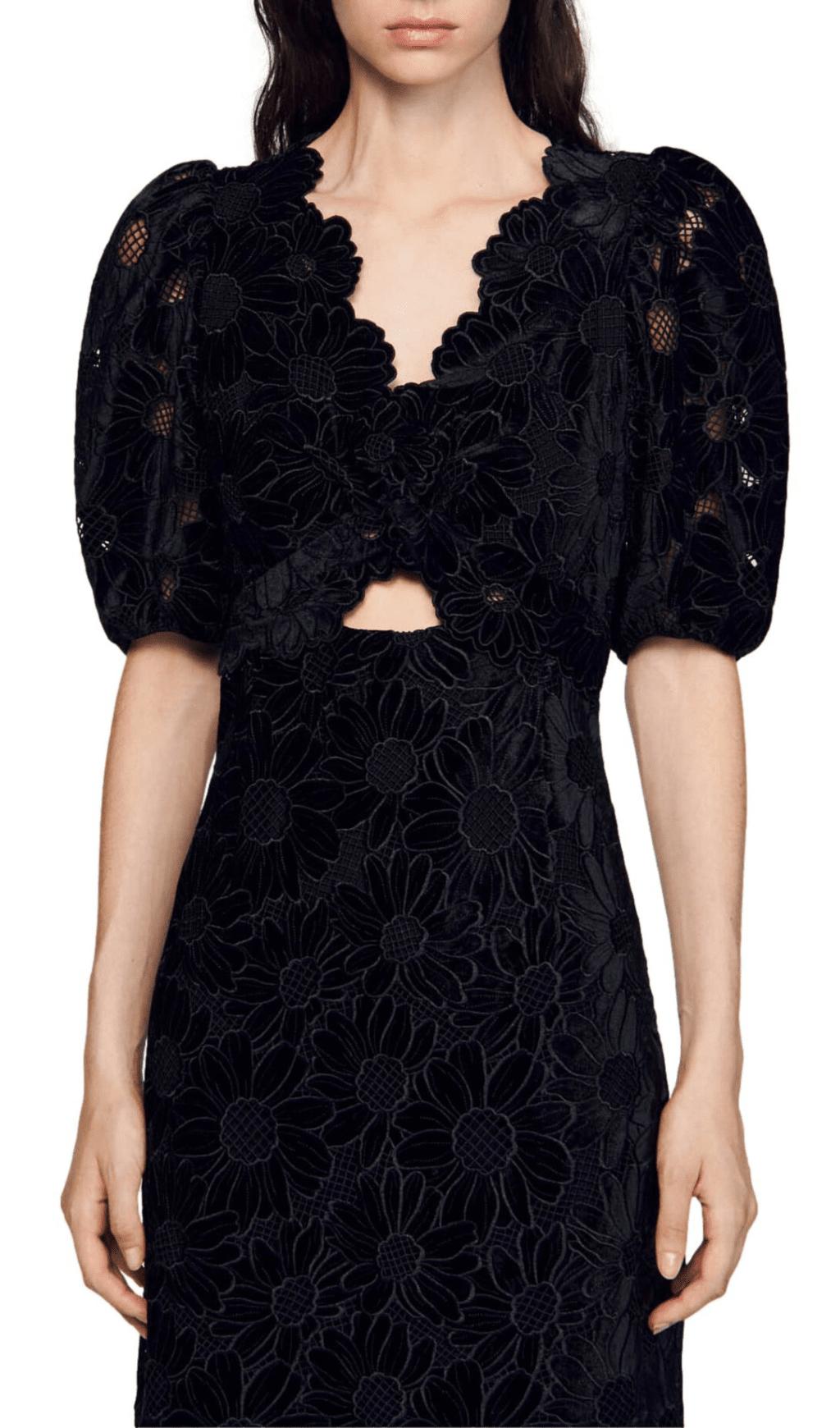 GUIPURE VELVET DAISY PRINT MAXI DRESS