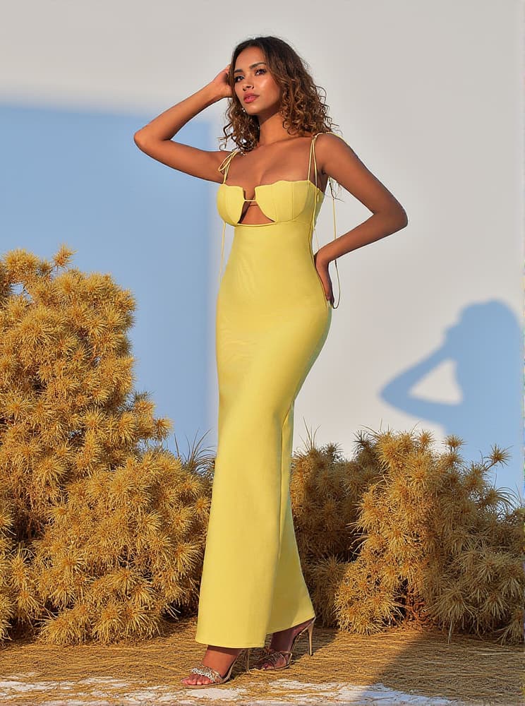 Gwyn Shell Cutout Maxi Bandage Dress In Yellow