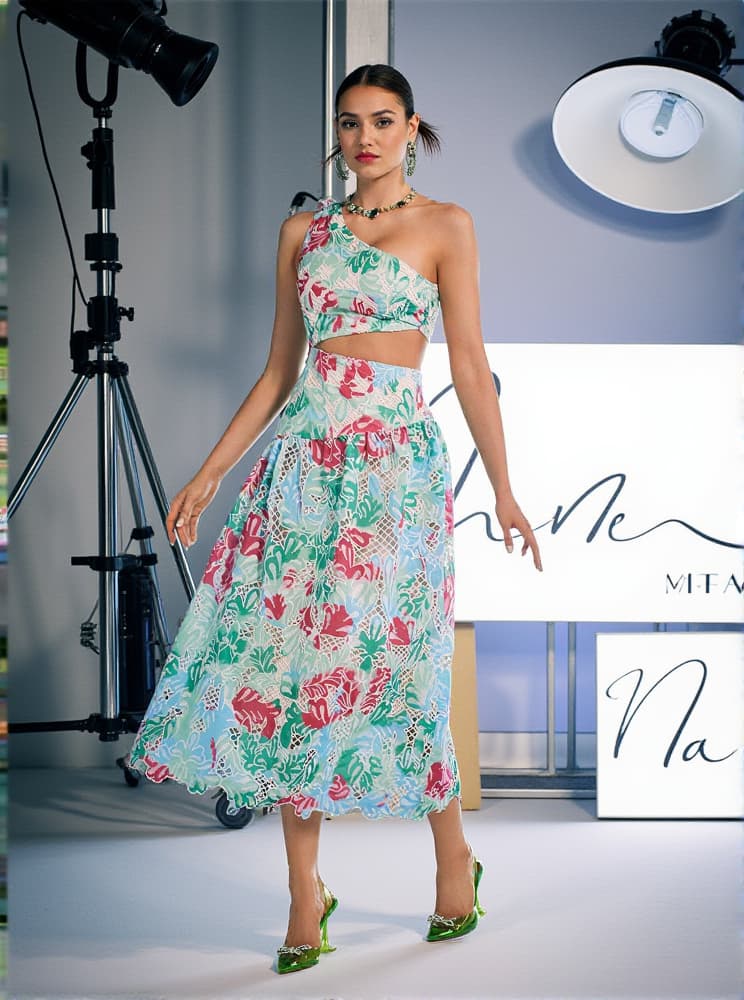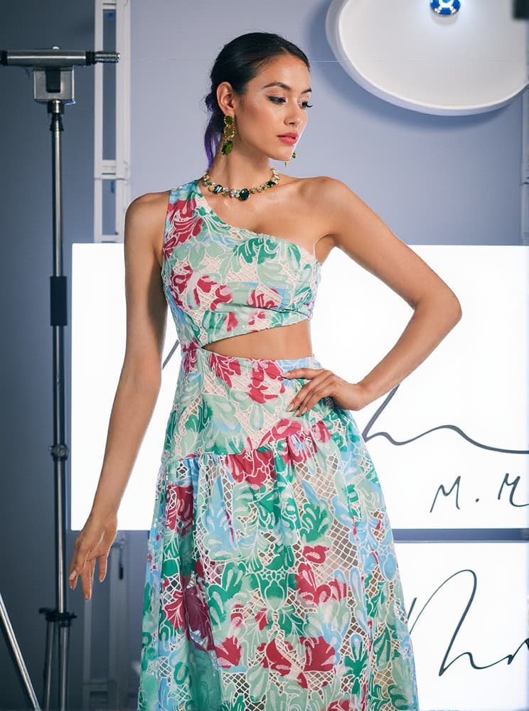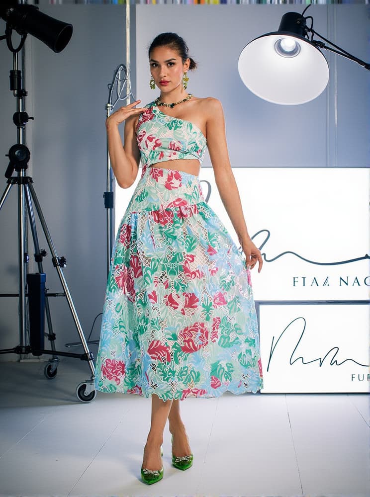 Experience the beauty and grace of our Habib One Shoulder Print Embroidered Dress. The exquisite embroidery and bold print make this dress a statement piece for any occasion. With its one shoulder design, it adds a touch of sophistication and elegance to your look. Elevate your style with Habib.