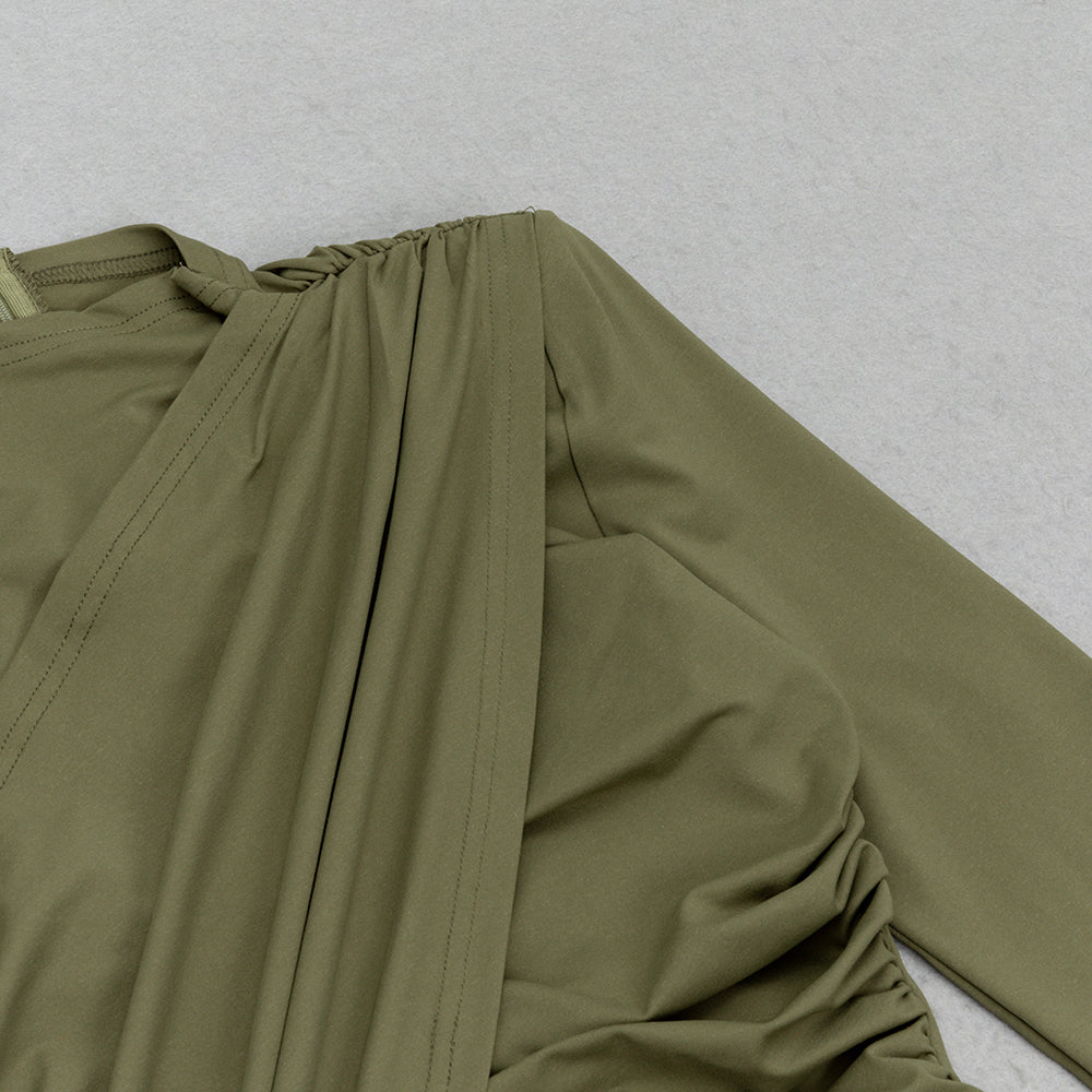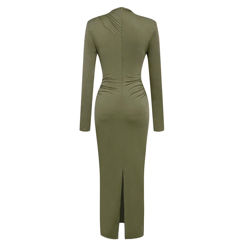 AGNETA GREEN RUCHED MAXI DRESS