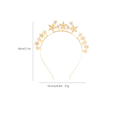 Introducing the must-have accessory for any fashion-forward individual - the Halima Crystal Pearl Star Headband! Elevate your look with this stunning headband adorned with sparkling crystals and delicate pearls. Perfect for adding a touch of glamour to any outfit. Shine like a star with the Halima headband!