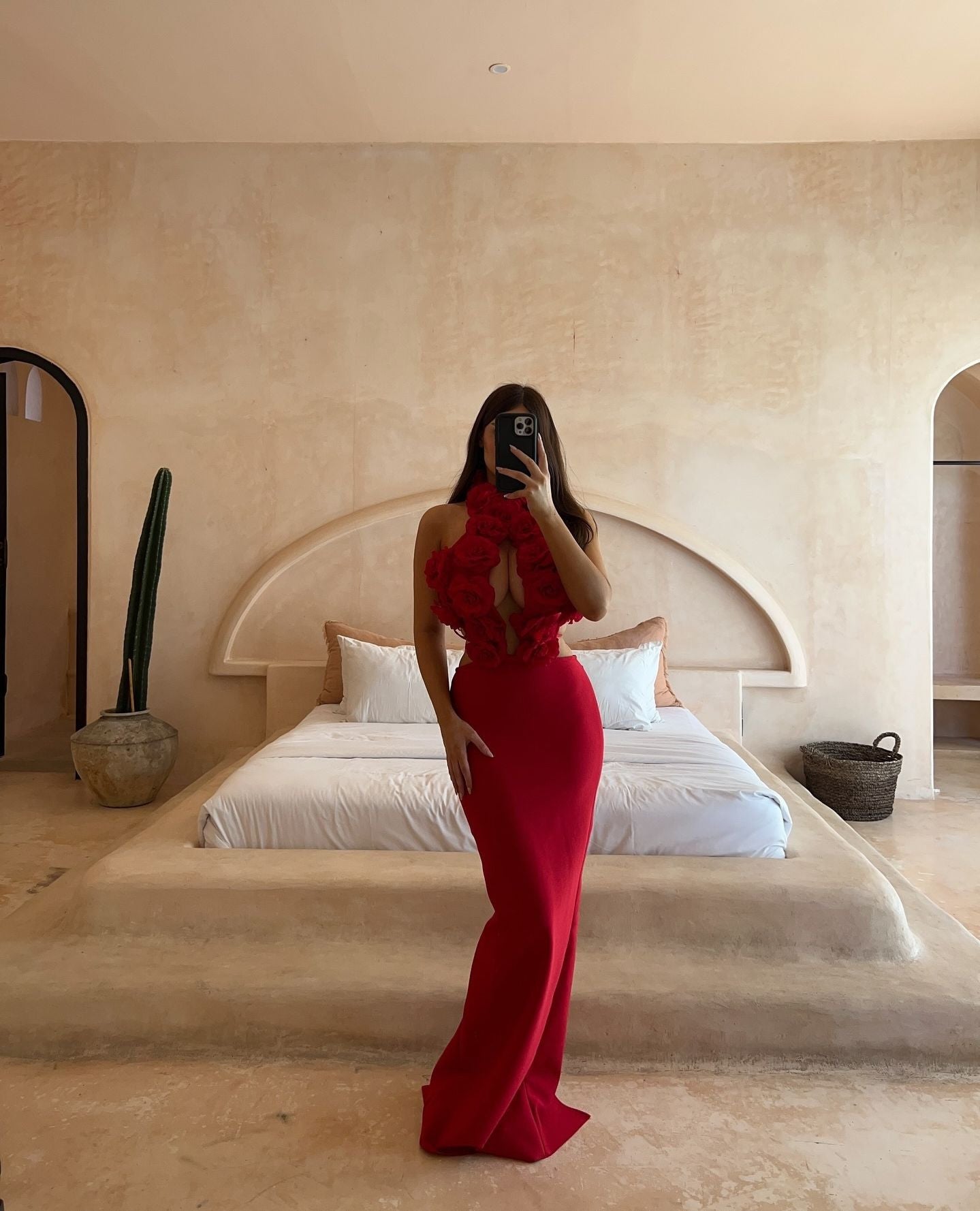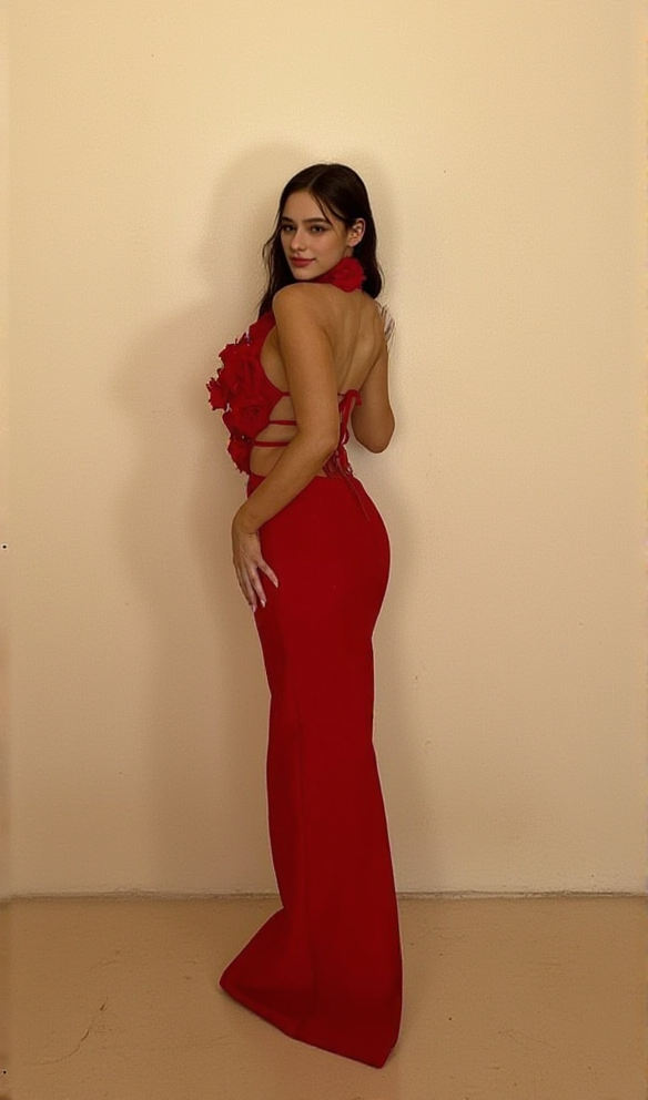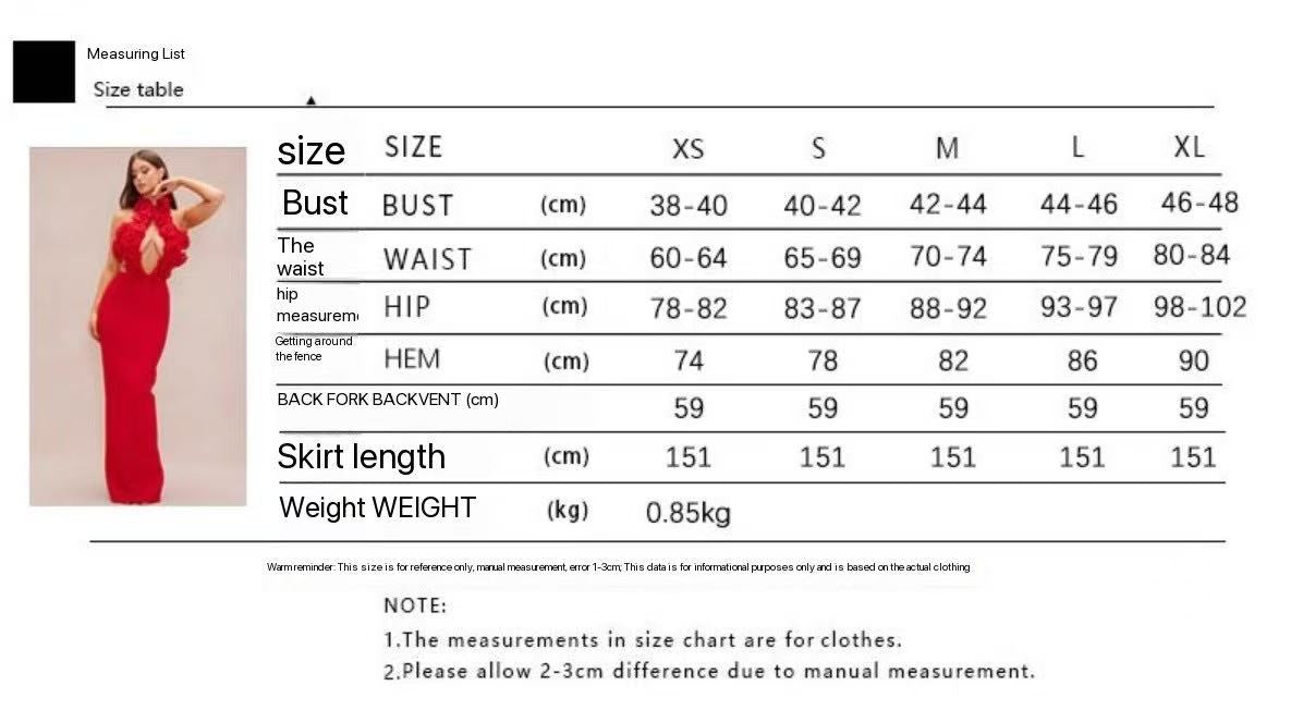 Experience effortless elegance with our halter 3D flower hollow out backless maxi dress in red. The stunning floral design adds a touch of femininity, while the halter neckline and backless design provide a flattering silhouette. Perfect for any occasion, this dress is sure to turn heads and make you feel confident.