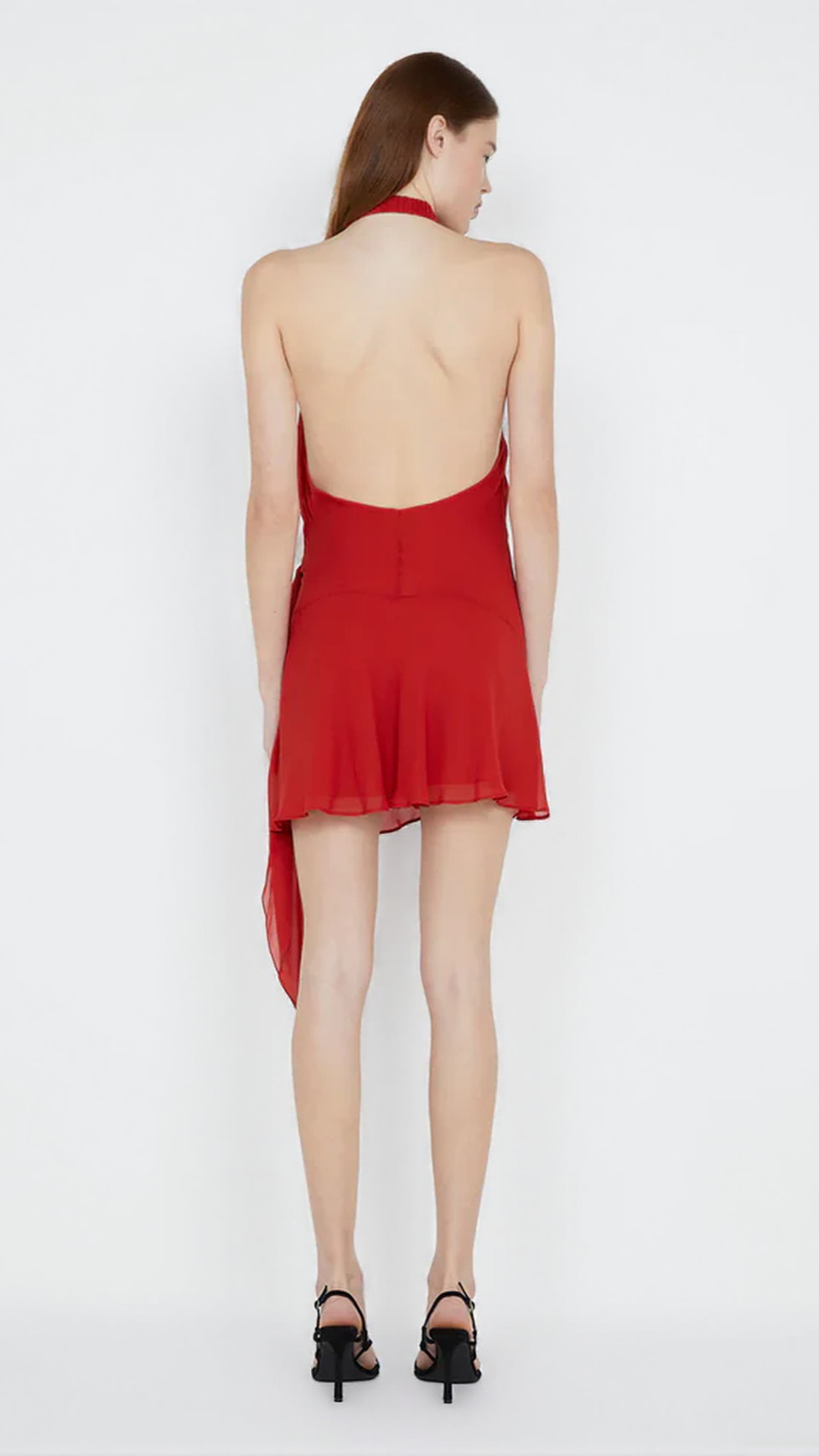 HALTER BACKLESS V-NECK SLEEVELESS LACE-UP MINI DRESS IN RED
