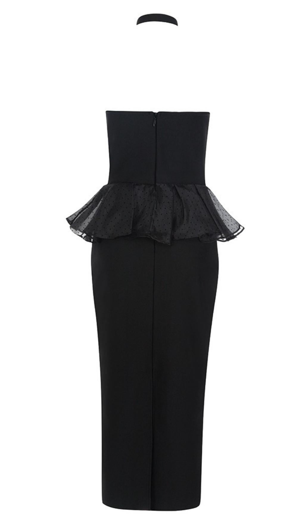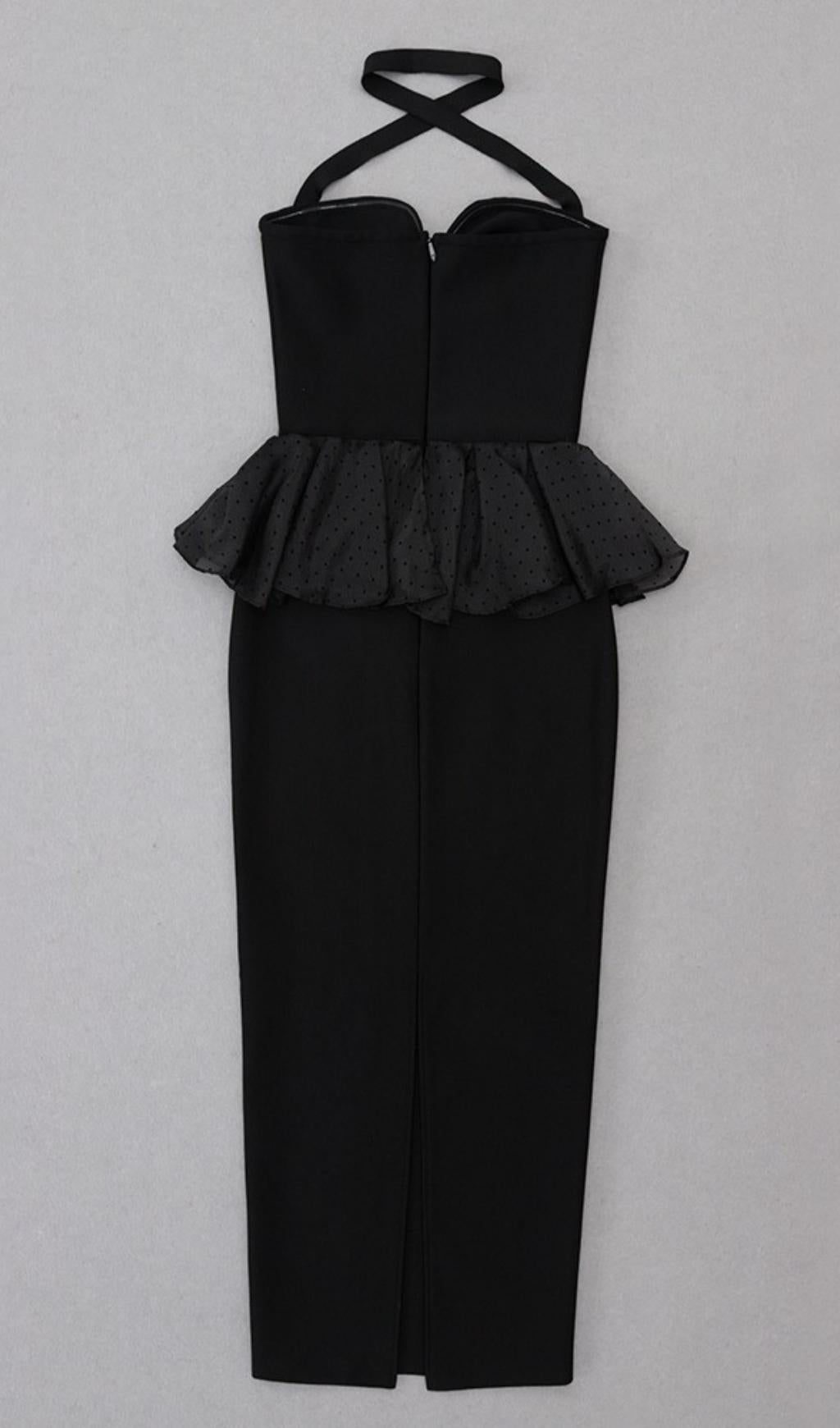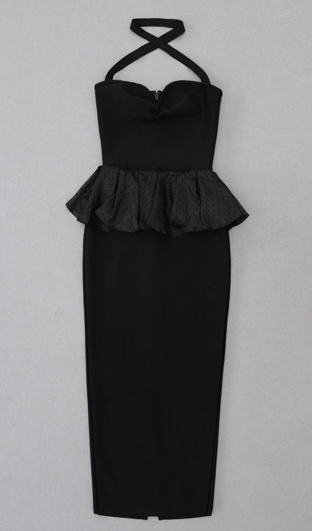 HALTER BANDAGE MIDI DRESS IN BLACK