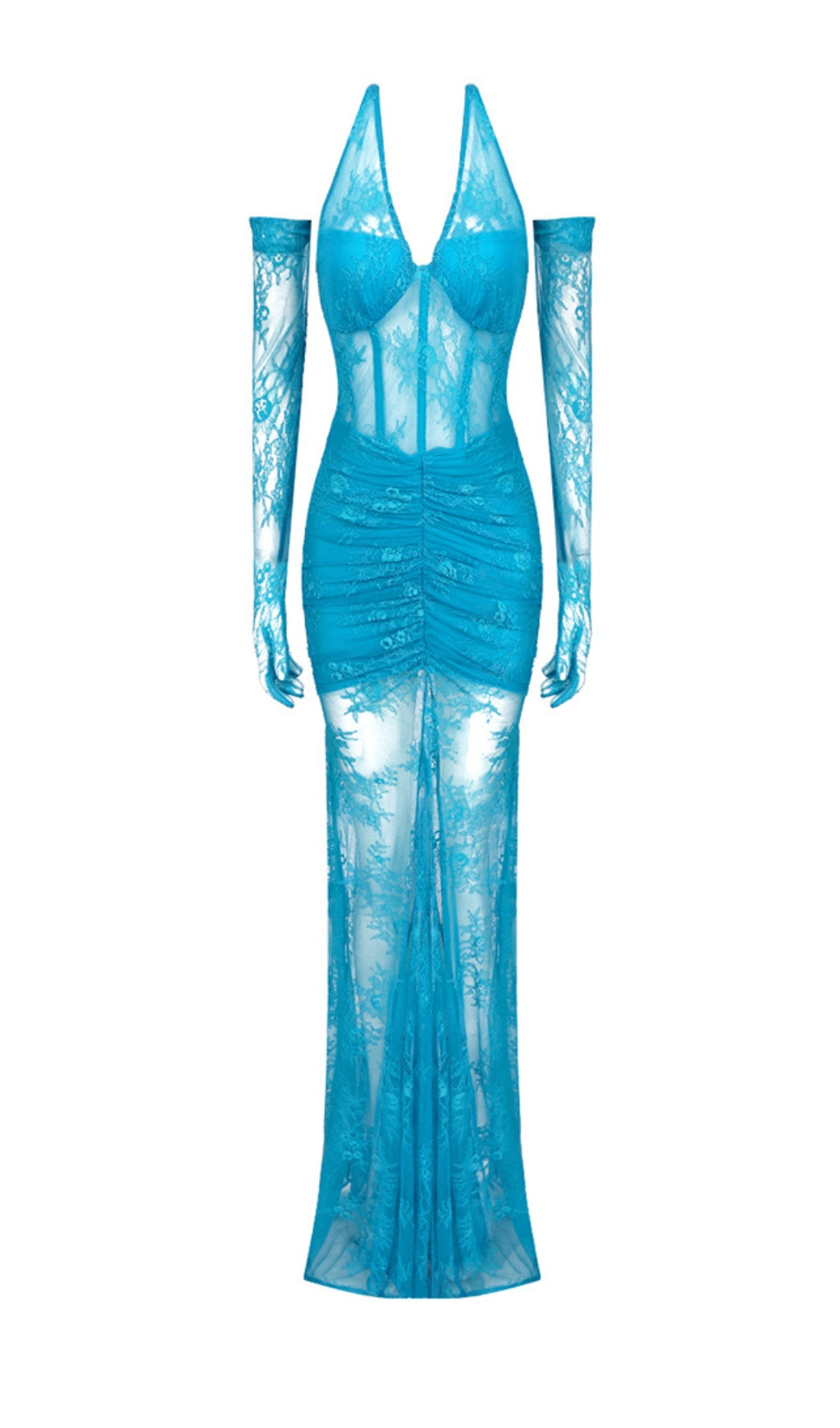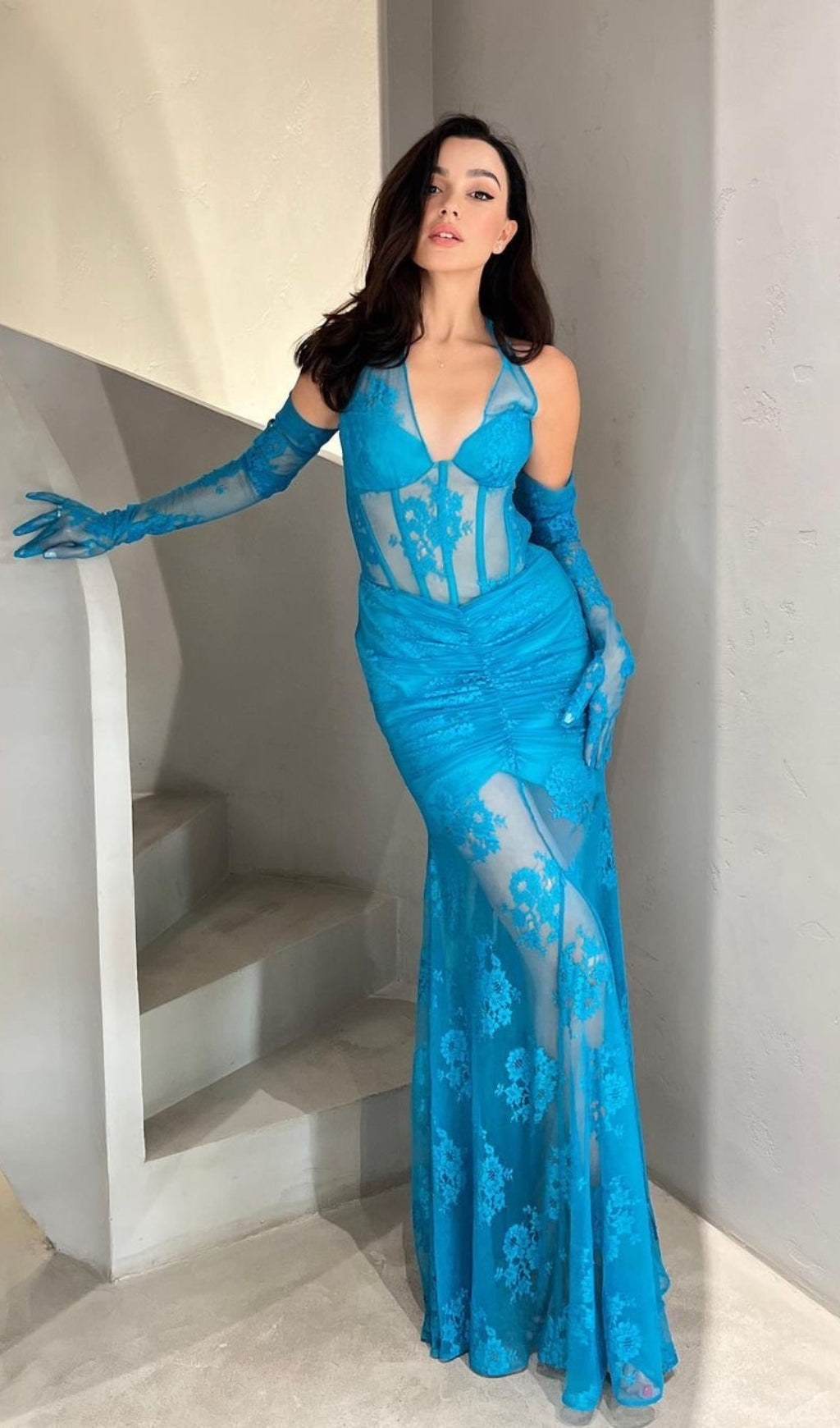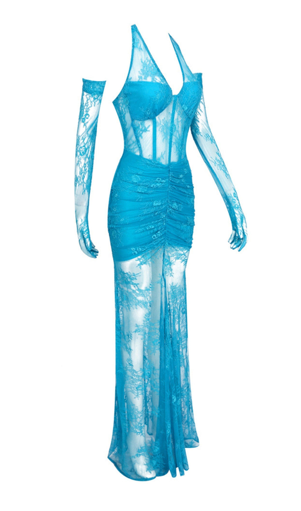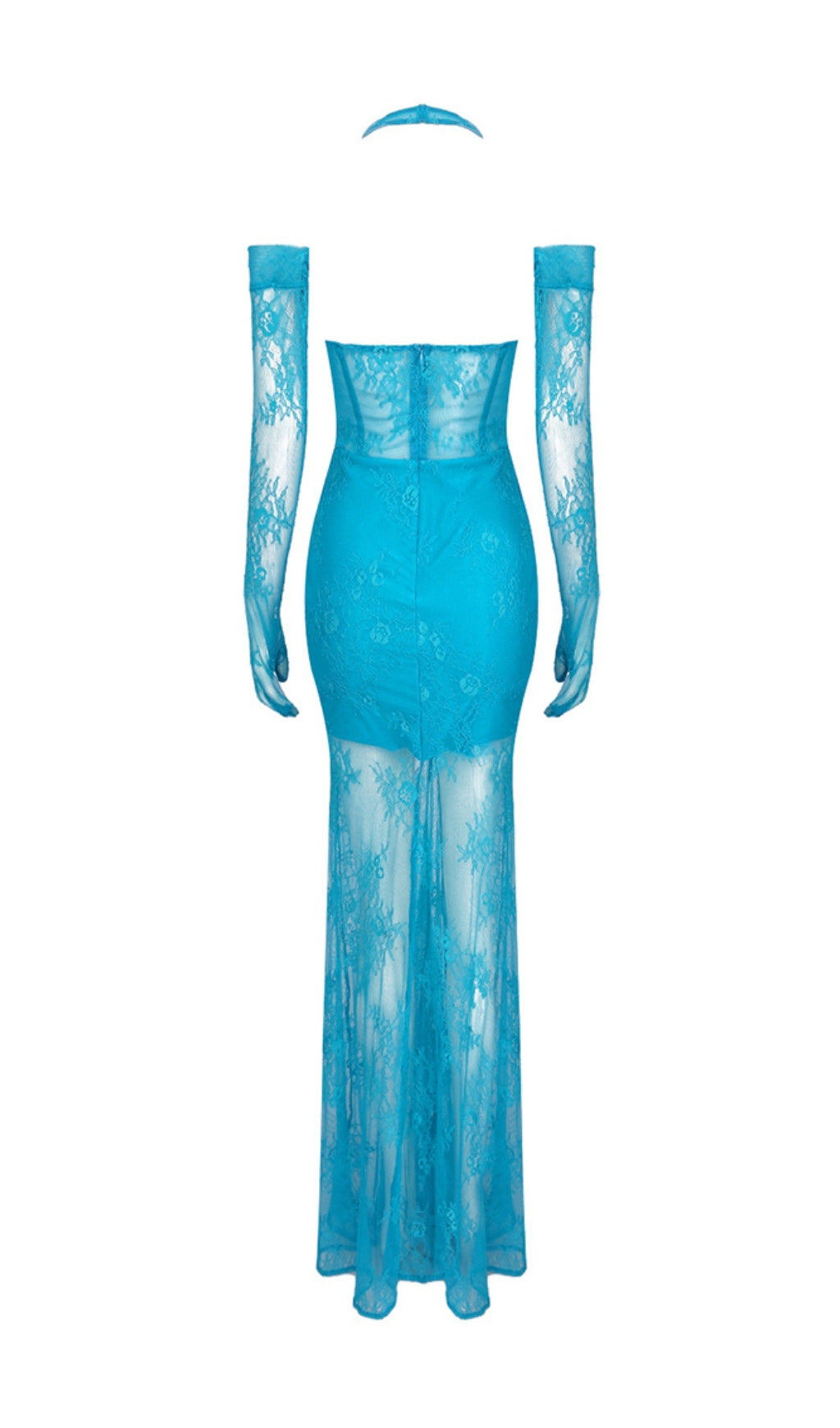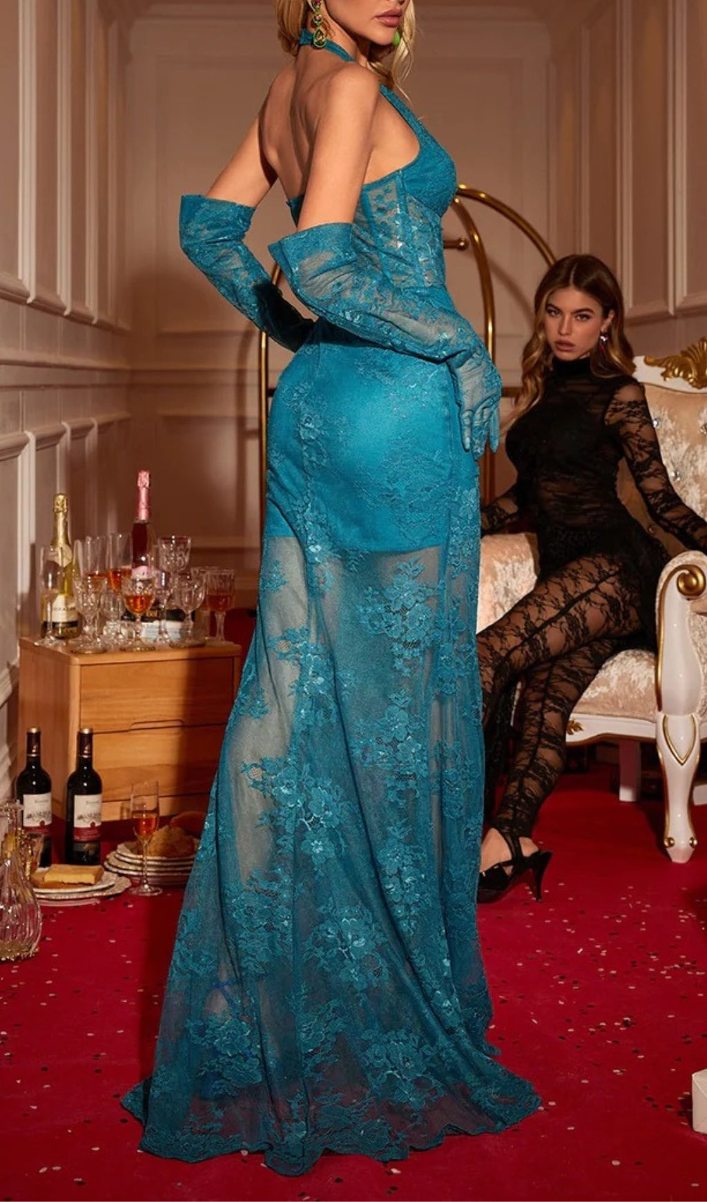 AOIFE BLUE BUSTIER FLORAL LACE GOWN