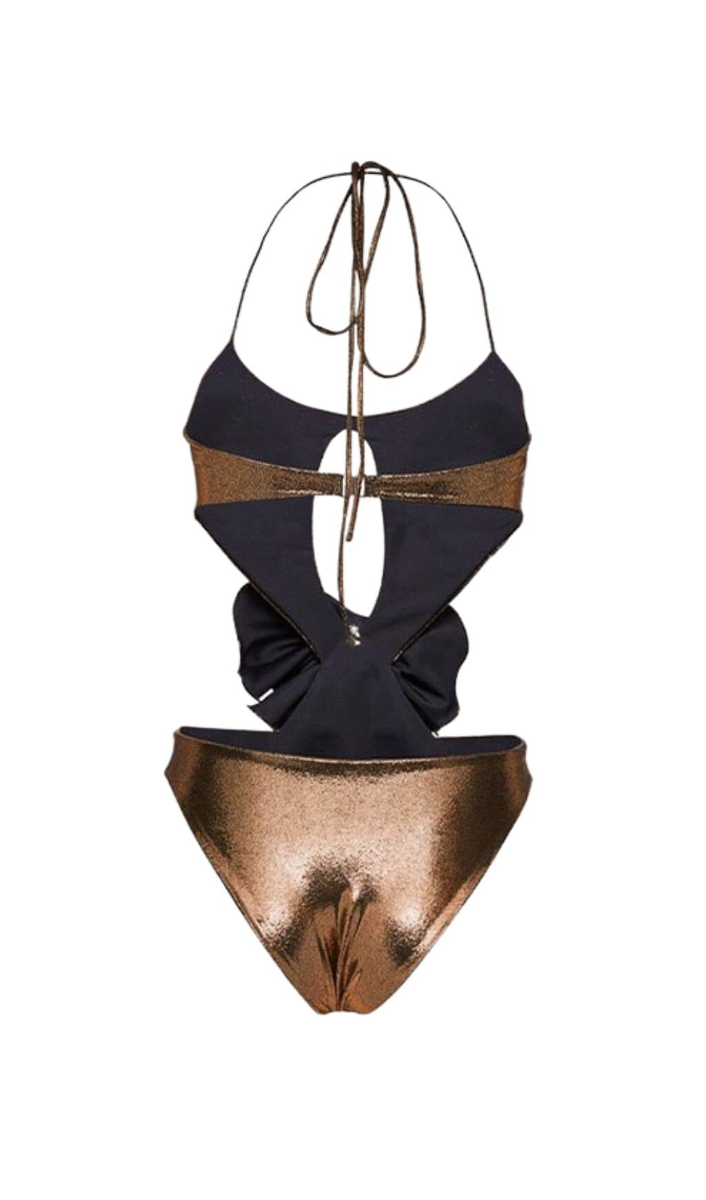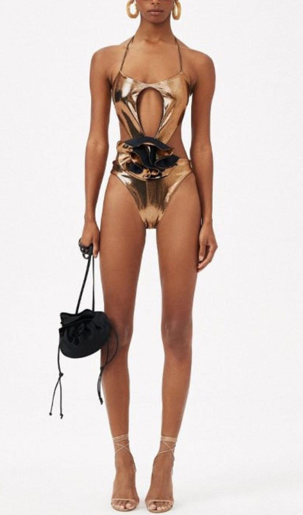 HALTER CUTOUT FLOWER SWIMSUIT IN GOLD