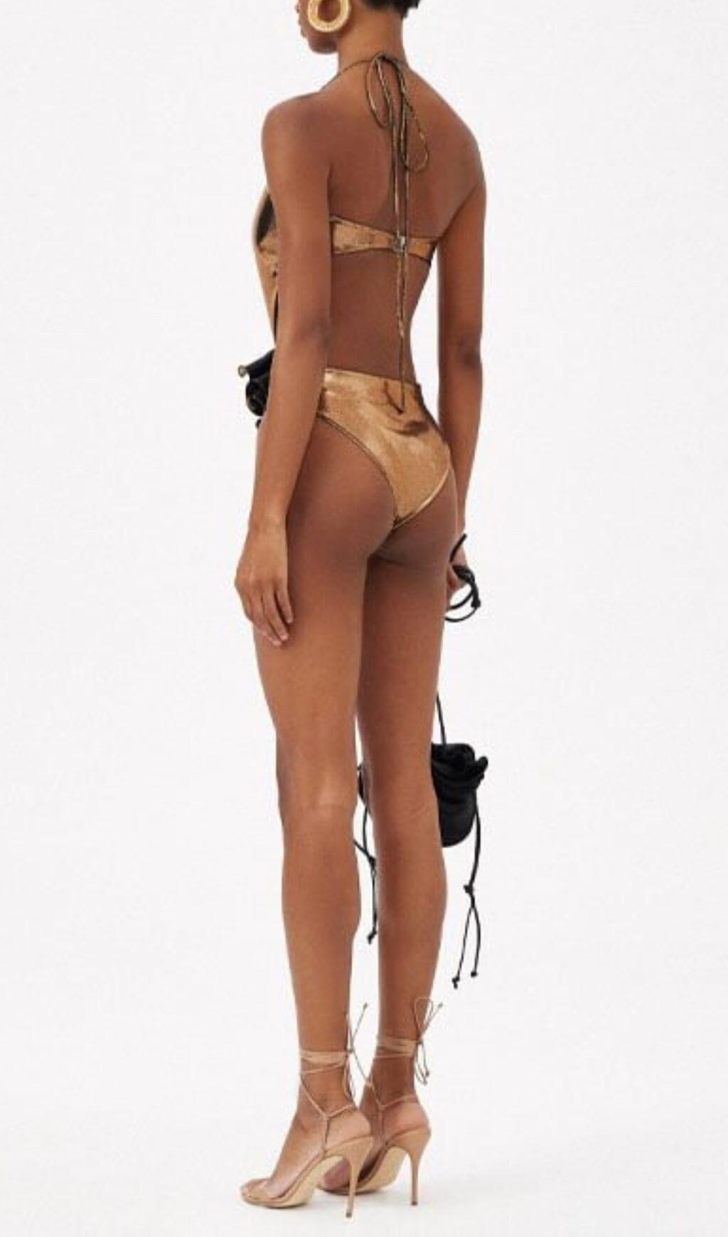 Made with high-quality materials, this swimsuit is designed to ensure both comfort and durability. It is available in a stunning gold color that exudes luxury and glamour.