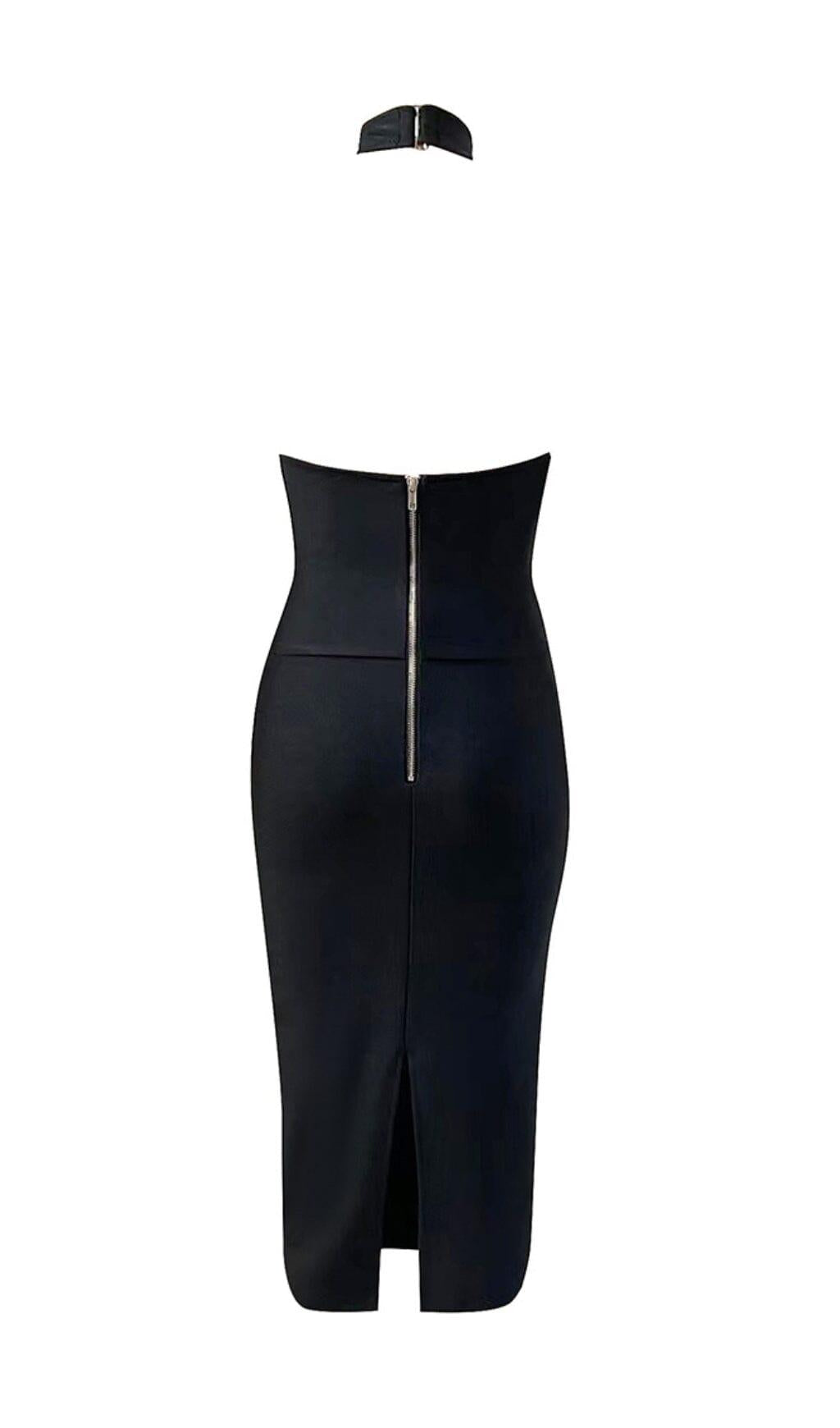 HALTER CUTOUT MIDI DRESS IN BLACK