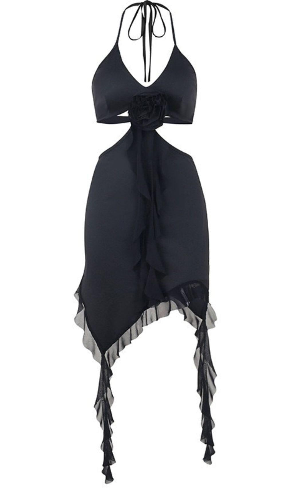 • Striking halter neckline and irregular hemline for a playful and sexy look