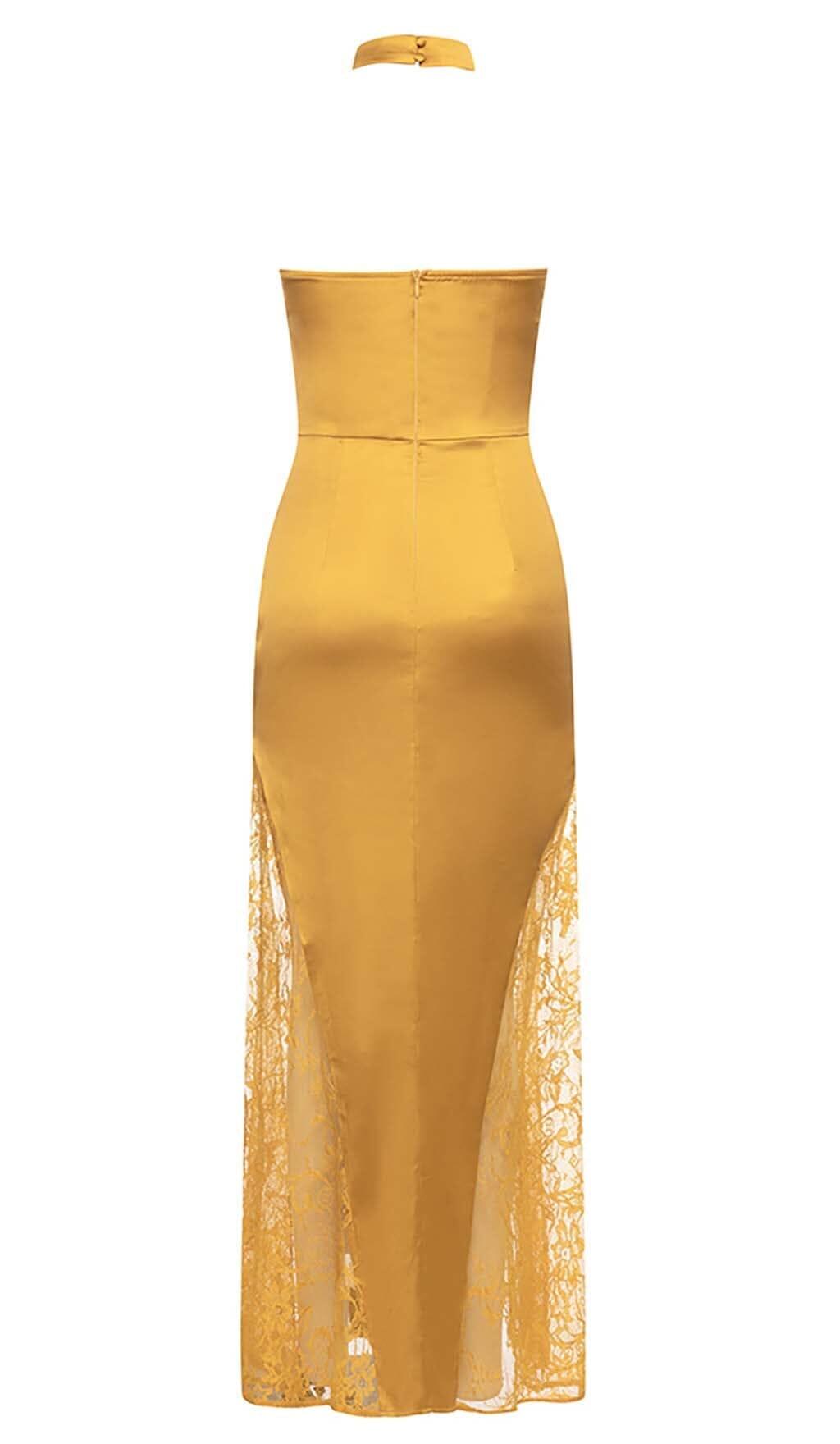 HALTER LACE SATIN MAXI DRESS IN MUSTARD