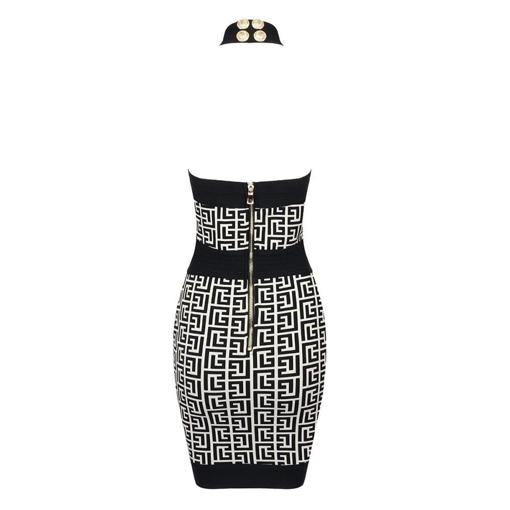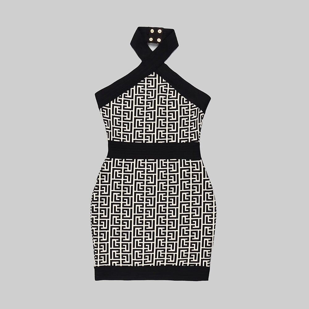 Make a bold fashion statement with the Halter Monogram Mini Dress in Mixed Colors. Add this smart and stylish dress to your wardrobe today!